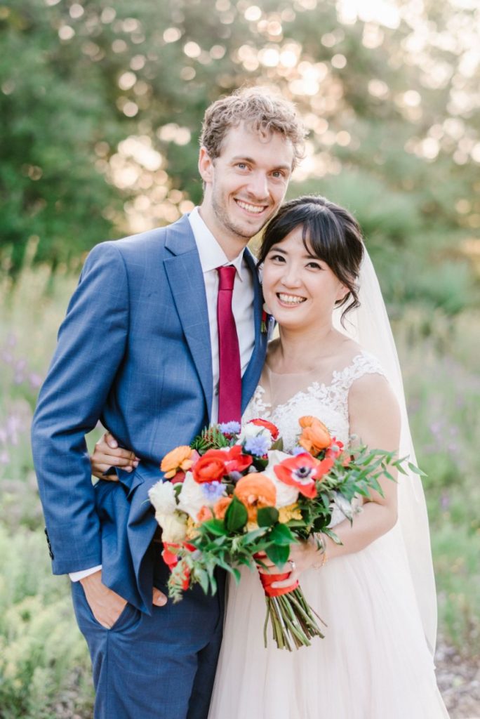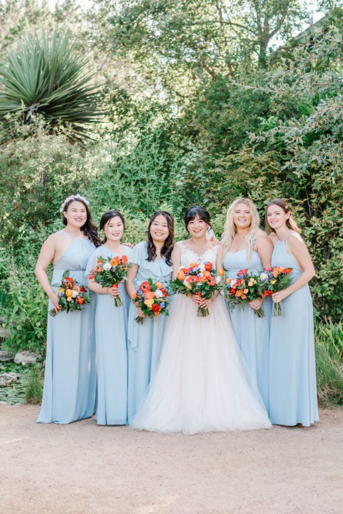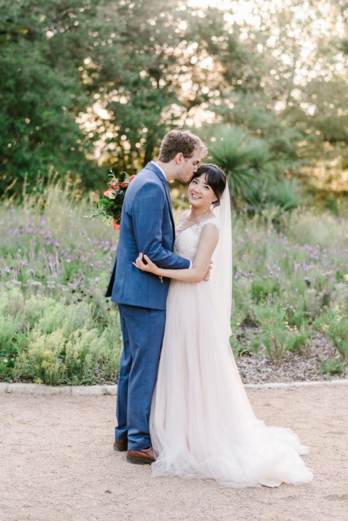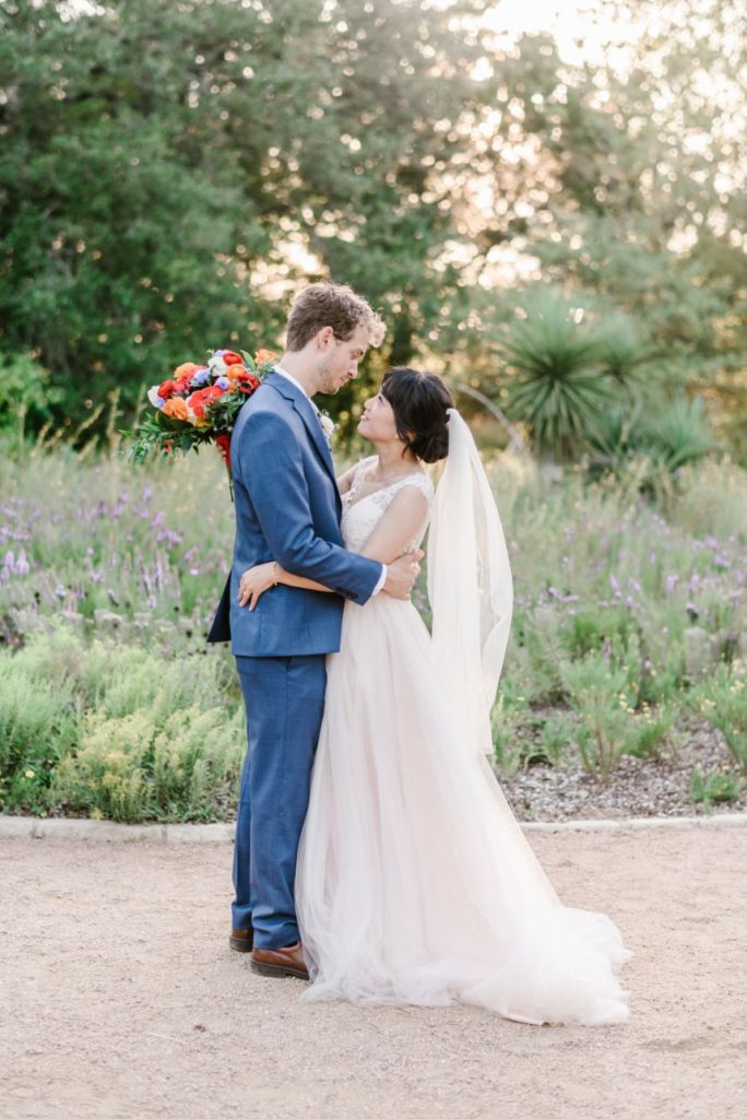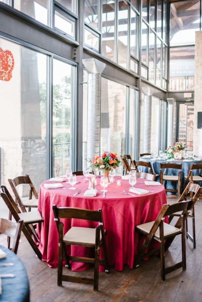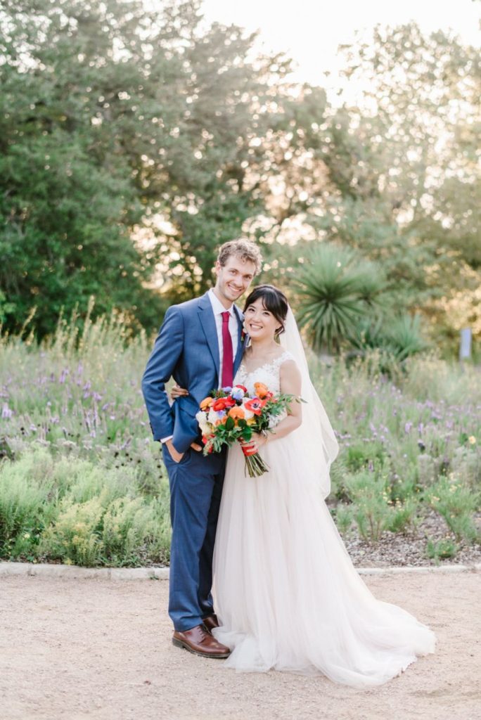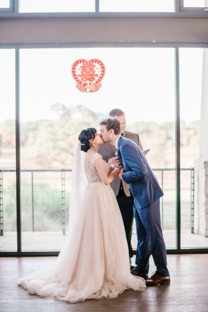 Planned by Kristin Catter Events, this bright and fresh affair is the perfect Texas-Taiwanese fusion wedding! Fiona and Connor first met while studying for their PhDs in electrical engineering at Stanford University. Connor saw Fiona in the basement lab one day and immediately thought she could be the one. Not long later they were dating, and the rest was history! Connor later popped the question at the Palace of Fine Arts in San Fransisco after a night of sushi and liquid nitrogen ice cream. Fiona, not being one to be surprised by Connor, correctly predicted the purpose of the occasion but was none the less thrilled to be asked the question. Now, the two look overjoyed to be wed in this beautiful gallery captured by Joslyn Holtfort Photography, and we are obsessing over Fiona’s bouquet! Utilizing various shades of blue and red, gorgeous florals tie in perfectly with the rest of their romantic decor. Fiona and Connor’s venue served as the most beautiful culture-combining backdrop complete with Texas-native wildflowers and decorated with traditional Taiwanese “Double Happiness” symbols (雙喜) which we just love. Read on to hear about the bride’s favorite vendors involved with her gorgeous Texas-Taiwanese fusion wedding. Cheers to Fiona and Connor!