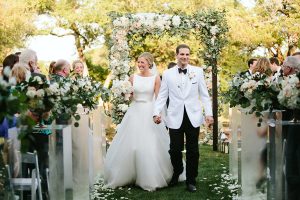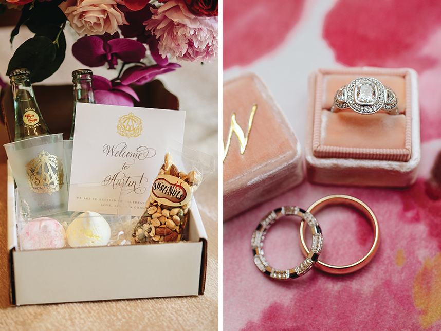 Newlyweds Annah and Cody describe their wedding as a true fairytale, and after seeing all the gorgeousness, we just have to agree! The team at Brock + Co. Events did an amazing job bringing the couple’s dream of a brunch garden party wedding to life. As guests arrived they received adorable welcome boxes with tons of treats including yummy Fluff Meringues. Botanical No. 9 adorned the venue with beautiful florals in eye-popping shades of pink, and guests mingled amidst the “bubbles bar” which was (not surprisingly!) a huge hit! Whim Hospitality provided the perfect rentals for the occasion. The incredible wedding cake from Simon Lee Bakery was five tiers iced in white and adorned with pale pink flowers and gold details including the couple’s crest in the middle. The sweet couple registered and exchanged rings from Austin staple The Menagerie. To see more from this exclusive Vows that Wow wedding, pick up the Spring/Summer 2017 issue of Brides of Austin and flip to page 50. Cheers to Annah and Cody!