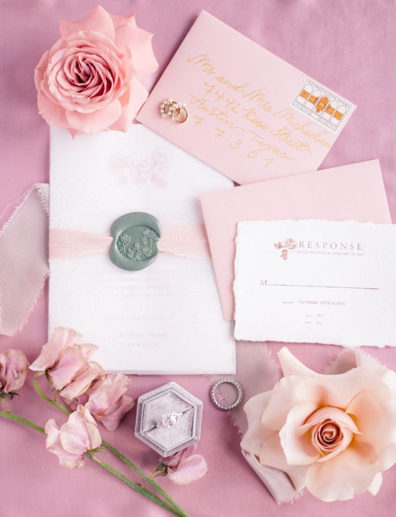 There are plenty of spaces to sneak away from the crowd around Ma Maison, but we’re partial to their luxe bridal suite where this wedding party indulged in sweets from Bakery Cloud Nine and swooned over sweet details like the ones Grey Meets Gold created in a romantic, timeless invitation suite complete with hand-lettered calligraphy and cocktail cart signage to match! Slowing down to enjoy your wedding morning will allow you to appreciate all the little details that make your big day special, just like all the pretty photos from this editorial down below to see for yourself. Cheers!