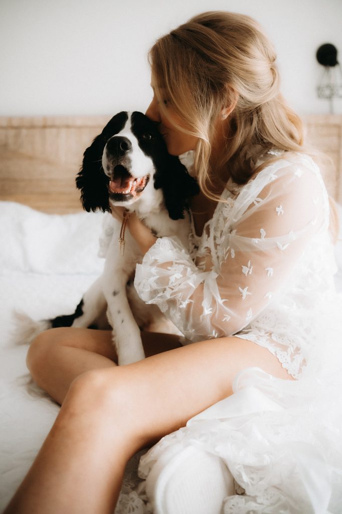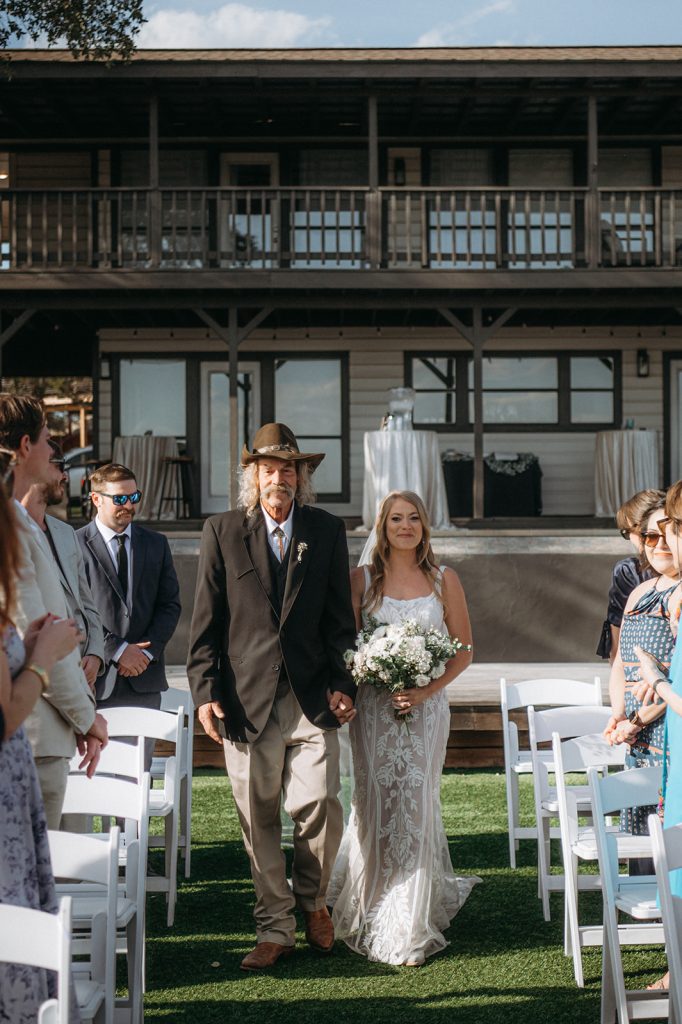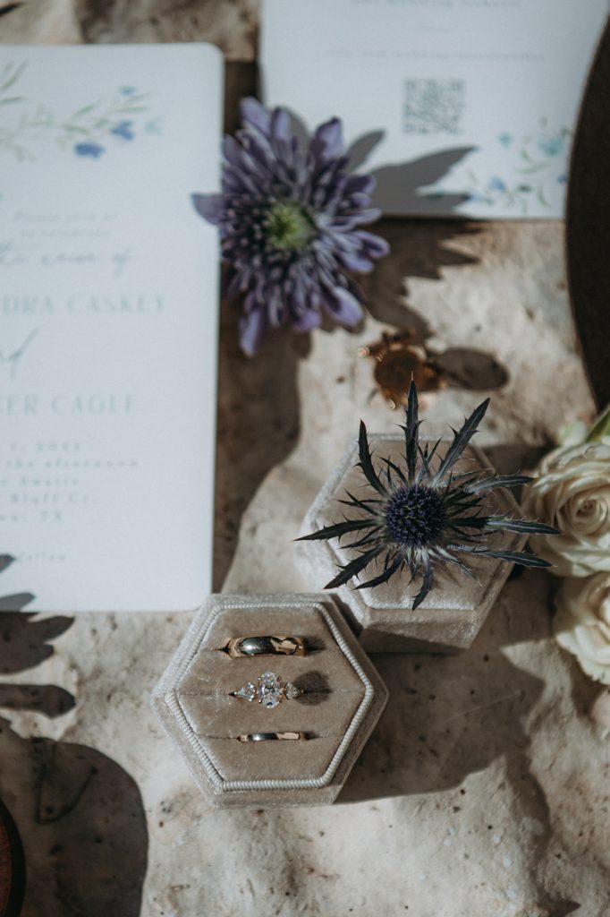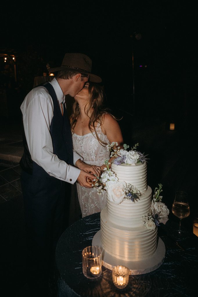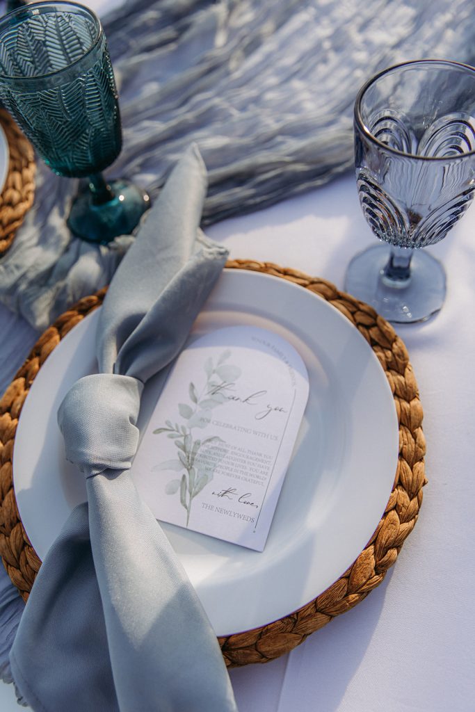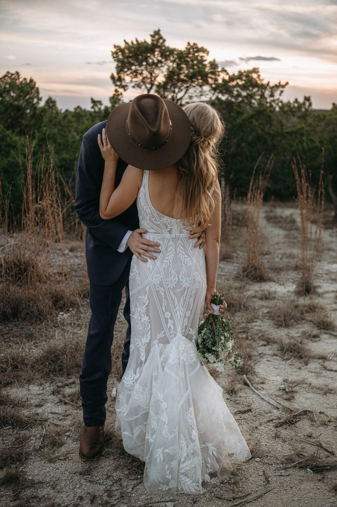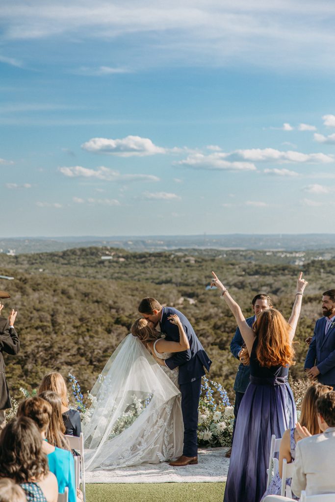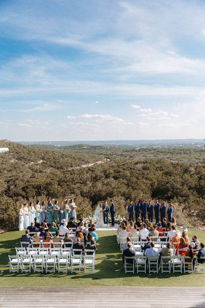 “As Tye walked down the aisle alongside their friends and family and towards the sunlight, she reflected on all of the memories from her and Walker’s time together and the adventure that awaited. As the sun set the sky above turned a dusty blue matching the tablescape designed by Cat Haus Collective and set the tone for the night and the party was ready to begin. The music was pumping and the drinks were flowing throughout the night as the party culminated with Tye Walker jumping off into the pool with their wedding party and jumping into their new lives together.”