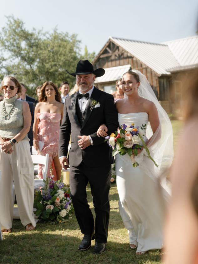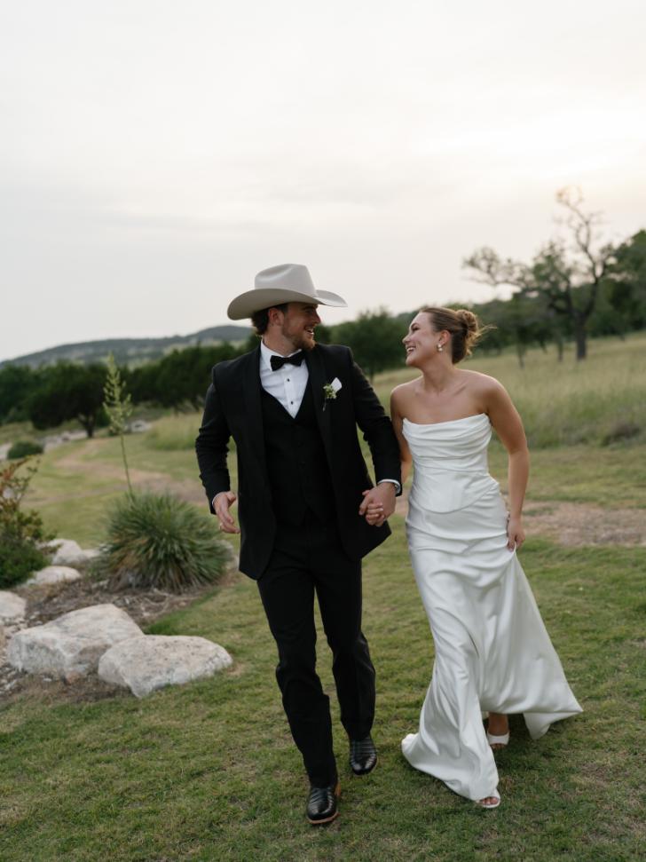 The Hensley wedding at Camp Hideaway Fredericksburg was filled with soft, romantic touches, from dainty bows to lace-detailed linens.⁠ 🎀