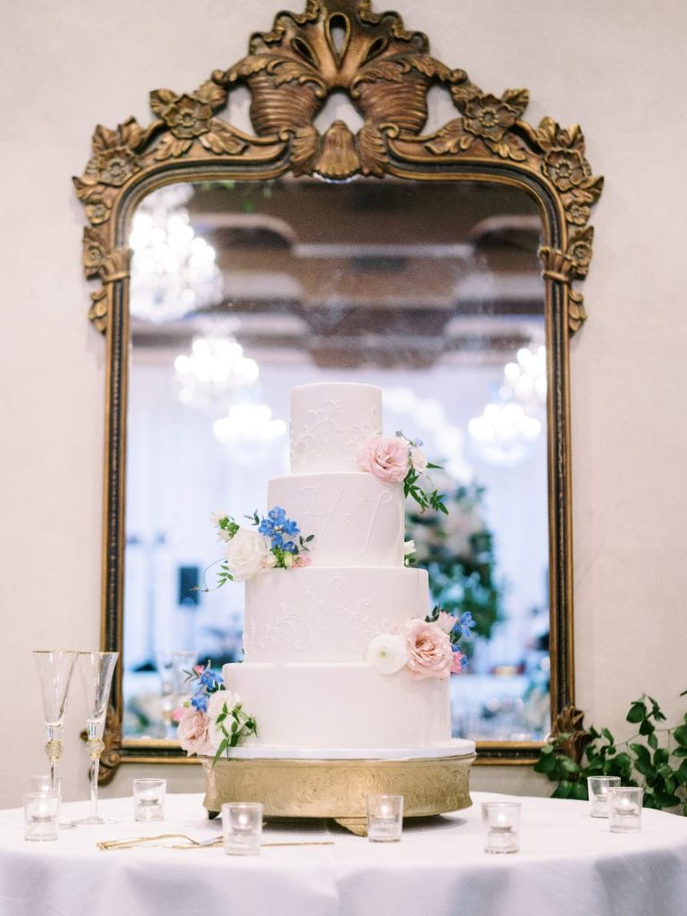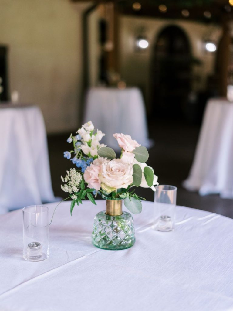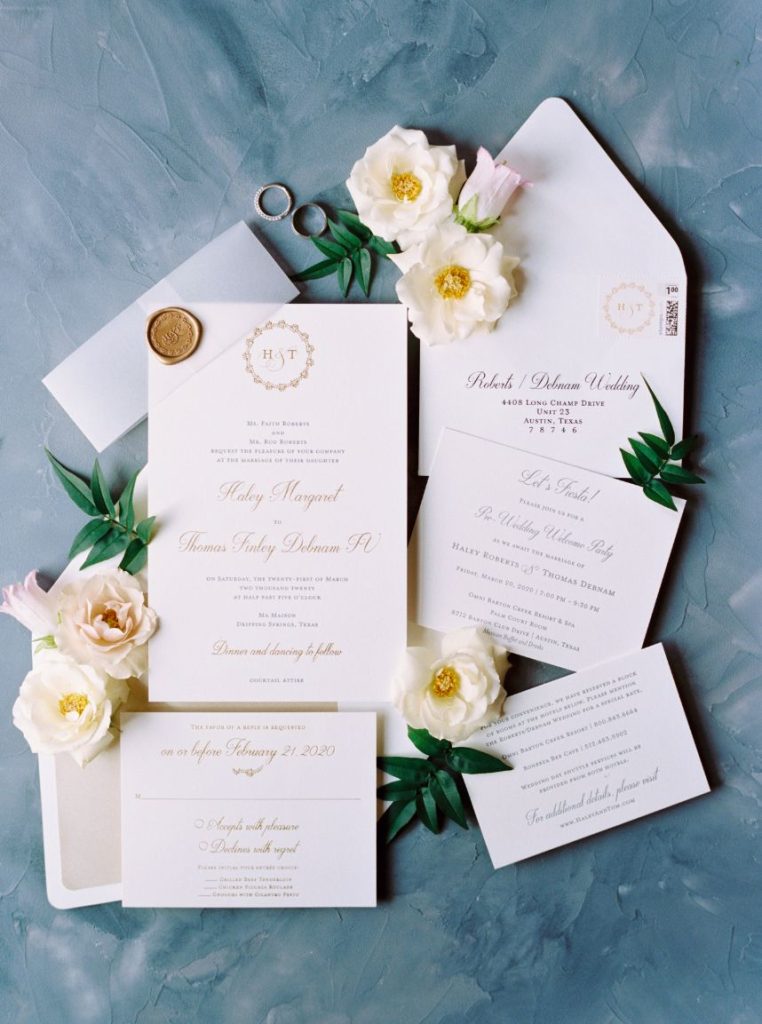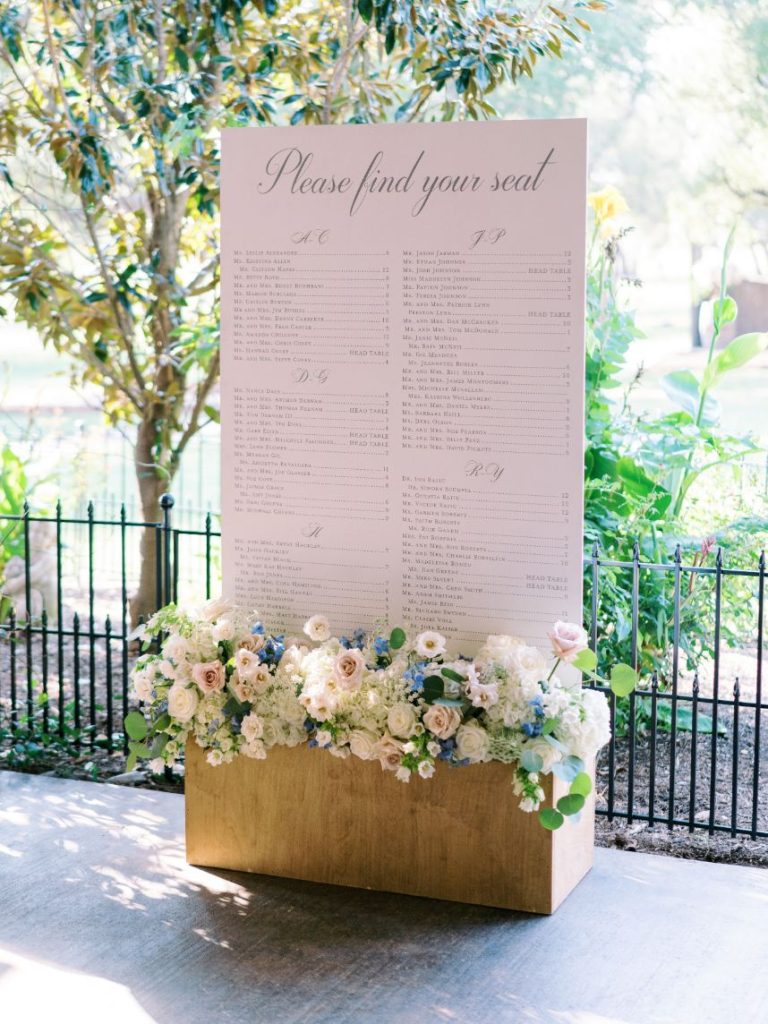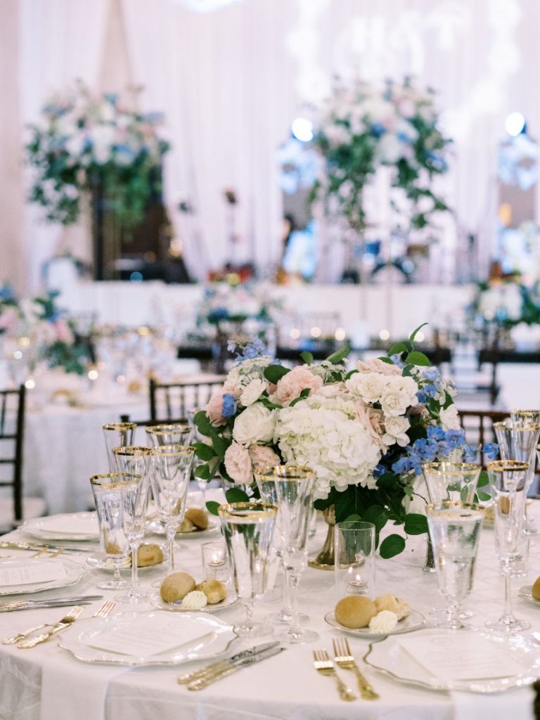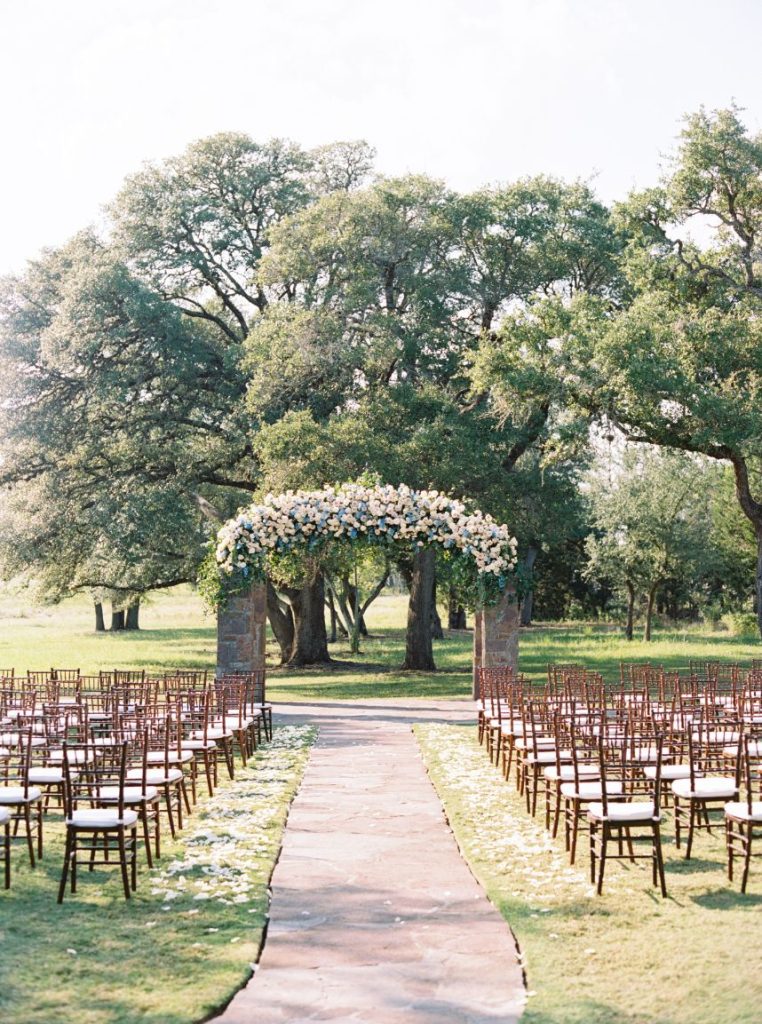 There was so much romance in this Hill Country wedding that peeked out in delicate accents of soft blue all around the gorgeous property at Ma Maison. Like many couples today, Haley and Thomas were a Tinder success story who hit it off immediately! Their fabulous fête planned by the professionals at Eclipse Event Co. was visually impeccable, but its sentimentality made it mean so much more. The couple incorporated some of their favorite people into the day, like the bride having a special first look with her dad and their dog Rhody who played a part in their proposal – so having him walk down the aisle and stand with the wedding party was only fitting! She wore a stunning V-neck ballgown silhouette from Stanley Korshak Bridal Salon while he was clad in a smart blue suit from Generation Tux. Haley and Thomas incorporated their own personal vows into the ceremony that shared their true, raw emotions for each other just before being pronounced husband and wife while standing under the most gorgeous floral arch by Stems Floral Design + Event styling in soft blue and ivory shades.