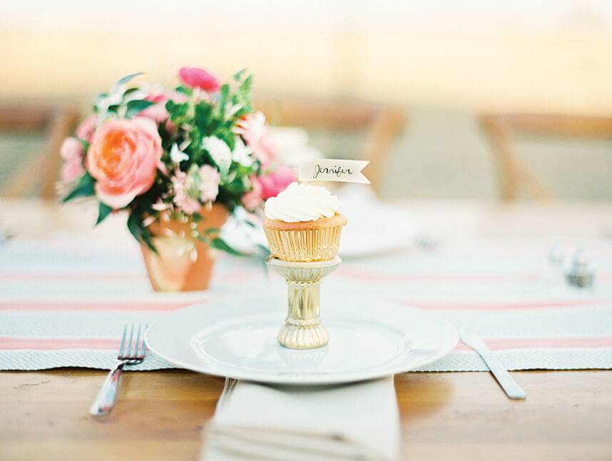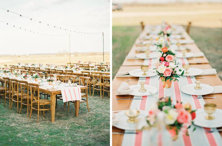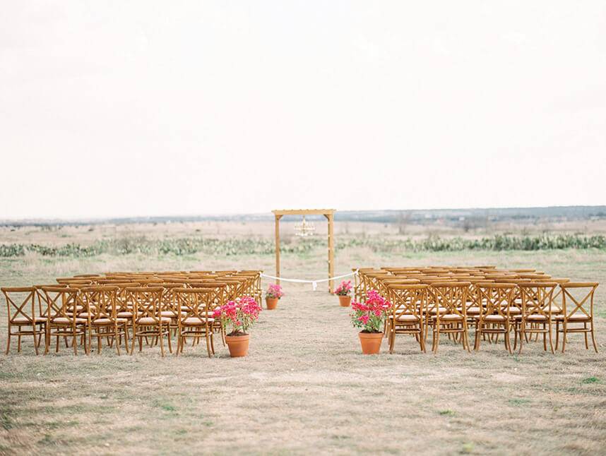 We absolutely adore this Hill Country wedding perfectly planned by Westcott Weddings! Set in a vineyard filled with gorgeous wooden chairs from Marquee Event Group, the lovely couple tied the knot in front of their family and friends. The celebration then moved to an enchanting dinner party setting filled with long wooden tables that were adorned with pops of pink and individual cupcakes at each place setting. The bride wore Kendra Scott jewelry to complement her sweetheart-cut Nicole Miller gown. Be sure to pick up a copy of Brides of Austin and turn to page A30 to see more from this beautiful wedding. Congrats to the Brittany and Dave!