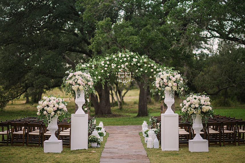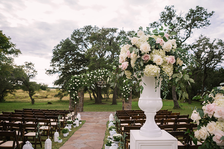 SETTING THE SCENE: Skip and Holly knew they wanted to get married outdoors so they could enjoy the rustic beauty of Austin’s hill country. However, they also wanted an elegant and sophisticated reception venue. Ma Maison’s pastoral scenery, paired with its palatial Great Hall, checked both of those boxes perfectly.