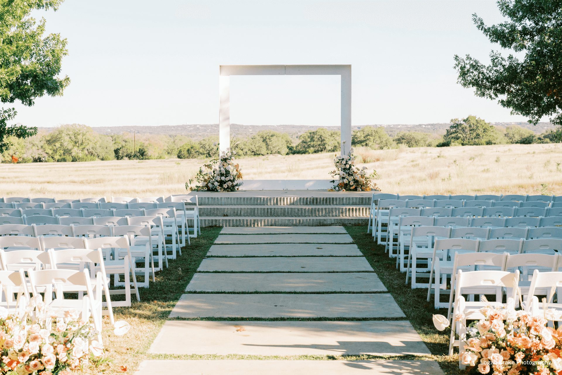 Just 25 minutes outside of downtown Austin, Prospect House offers an industrial getaway among the Texas rolling hills. The outdoor ceremony location features concrete steps up to square backdrop overlooking the countryside. Metal covers the reception hall’s outer layer, with a few floor-to-ceiling windows providing a peak to the white shiplap inside. If an industrial style paired with natural elements is your dream, this venue is for you!