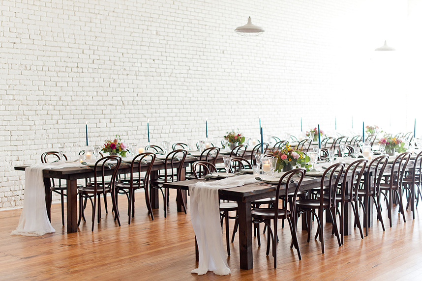 Built in 1983, One Eleven East has been thoughtfully restored to cultivate its original architectural details while also subtly modernizing its downtown charm. We see brides drawn to the clean white-brick walls, 15-foot ceilings, pinewood floors and beautifully arched windows that lead to the property’s private outdoor courtyard.