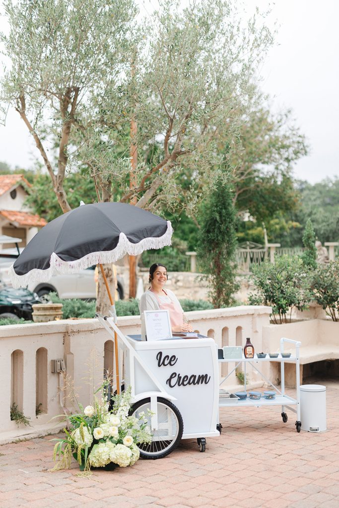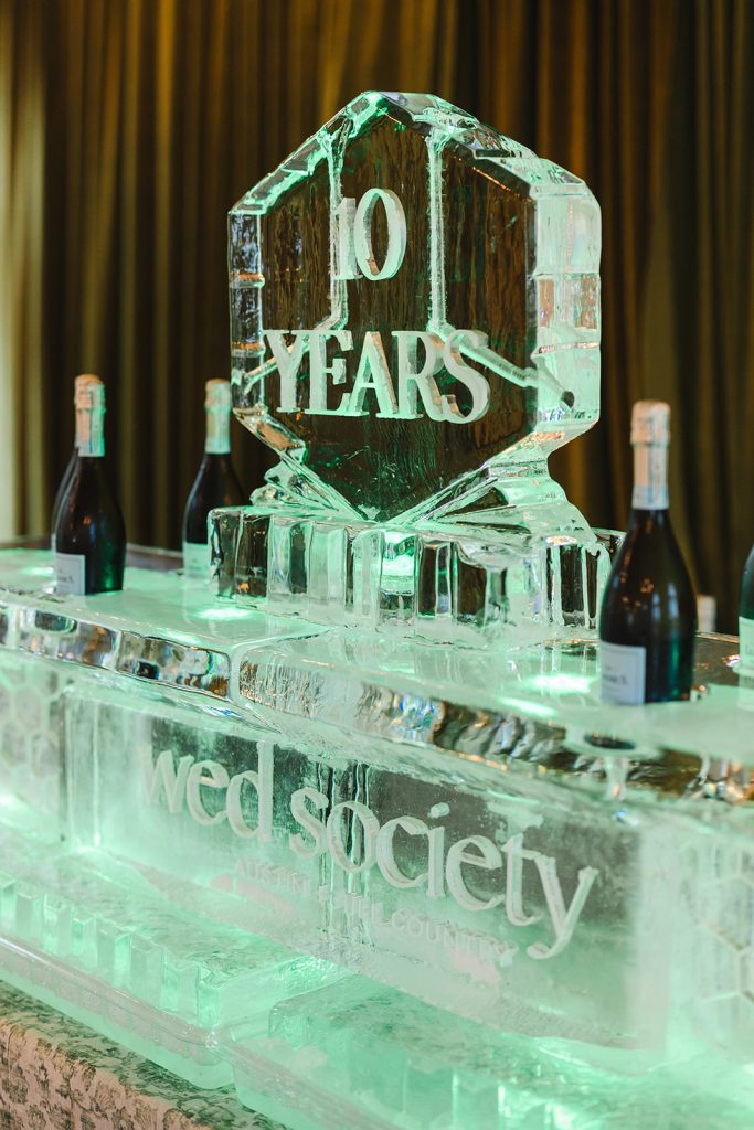 Attendees enjoyed bites and drinks courtesy of SoHo Catering & Consulting, while sweet treats were provided by Blue Goo Bakery’s delectable cookies and refreshing scoops from Just Scoops ATX’s ice cream cart. A highlight of the evening was the glitter bar by Austin Glitter Bar, a braid, lip, and lash station by The Stylist Abroad, and a show-stopping Full Spectrum ice sculpture with 10th Anniversary Wed Society | Austin detailing.