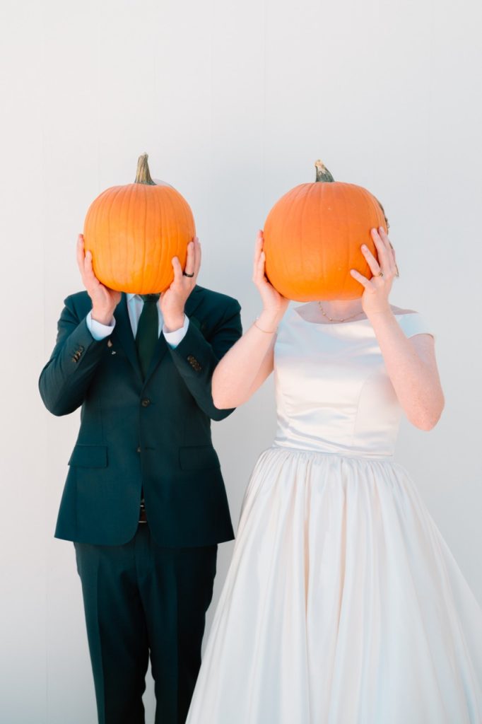 Jennie and Shawn are a creative, Halloween-loving couple that wanted to be surrounded by their closest family and friends. Their intimate day included fun pumpkin photos, taken by Lucy Leora Photography, with their reception being held at their favorite local brewery.