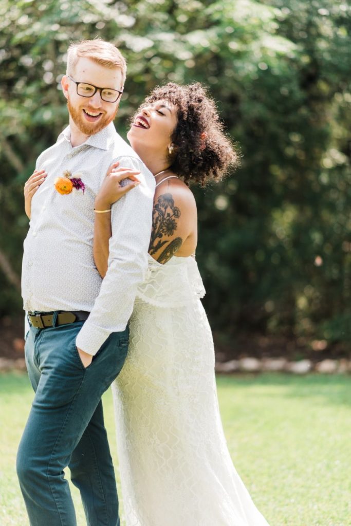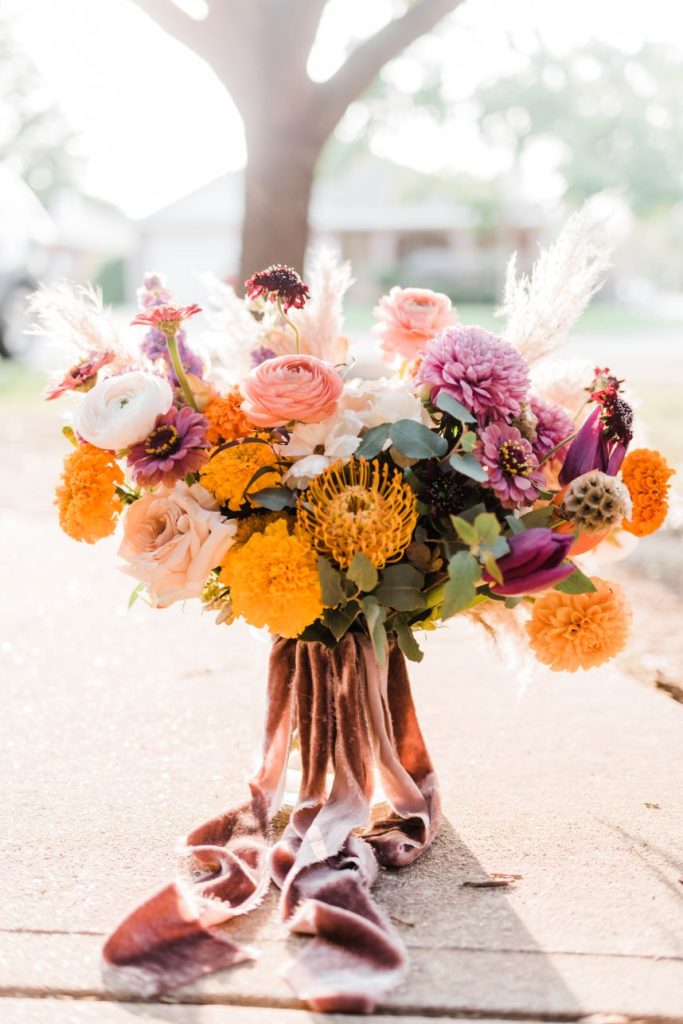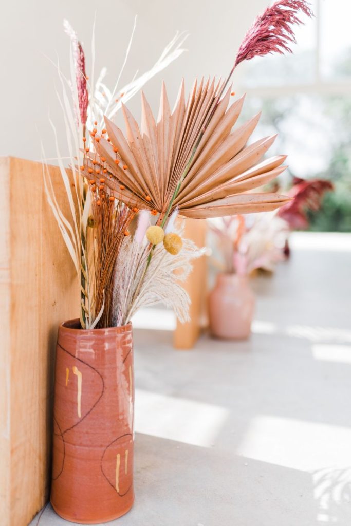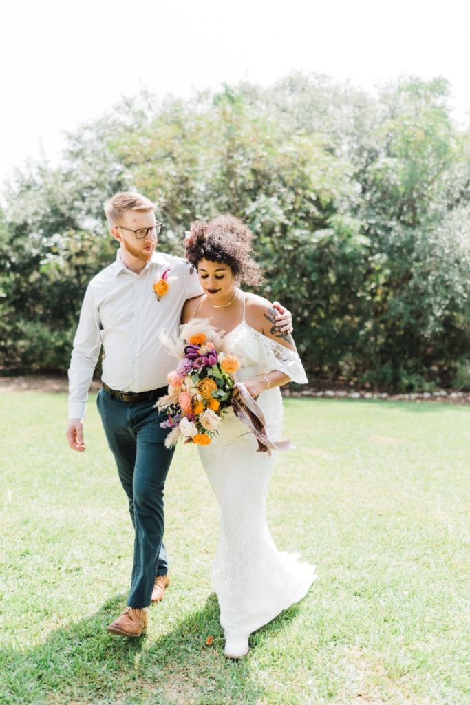 Jocelyn and Derek radiate pure love in their intimate and minimalistic boho wedding in the most romantic sunset shades. After having their ceremony postponed once already due to COVID-19, this pair knew the second time around they would not let anything put a damper on their day! Filled with modern elements like the adorable whimsical vases that line the aisle filled with wild-spirited dried floral design, less truly is more in these tastefully styled scenes around an ultra-cool chapel setting. Carhart Photography expertly captures all the swoon-worthy details of the day in this minimalistic boho wedding gallery, while their videography skills create a digital keepsake that Jocelyn and Derek can relive and enjoy over and over again. Read on for a note from the bride about one of her favorite wedding day memories, and keep scrolling to see all the shots of this minimalistic boho affair! Cheers to Jocelyn and Derek!