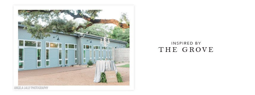 The Grove, named for the majestic oak trees thought the property, inspired a mix between this modern acrylic and organic moss invitation from Scripted Ever After.