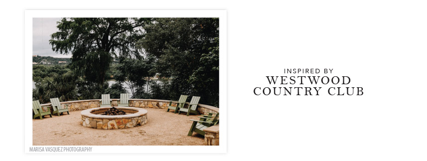 The Westwood Country Club’s scenic views of Lake Austin inspired this relaxed yet elegant invitation from Archer & Olive.
