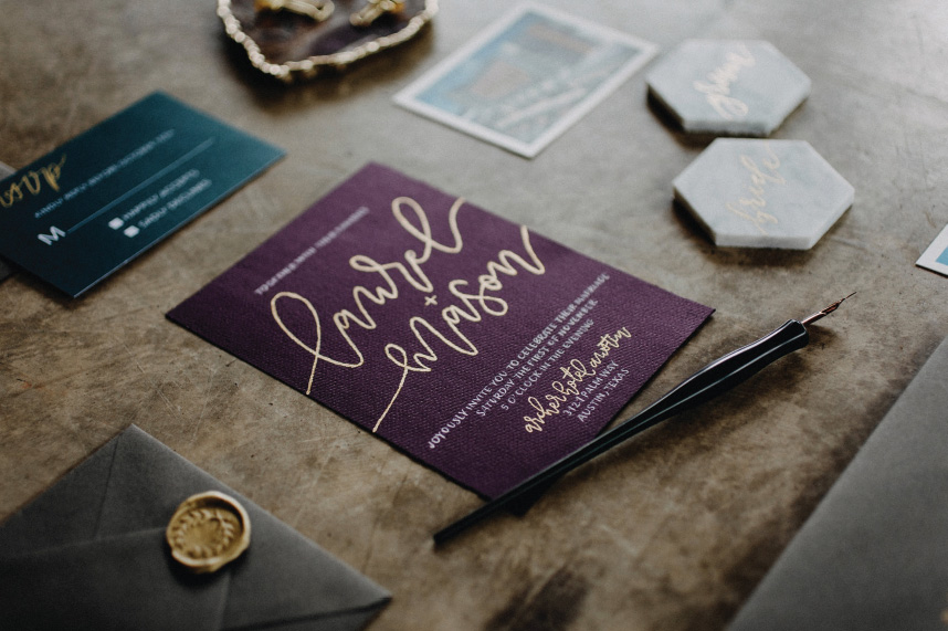The modern and industrial design of the Archer Hotel Austin pairs perfectly with this chick calligraphed invitation from Averi With An Eye.