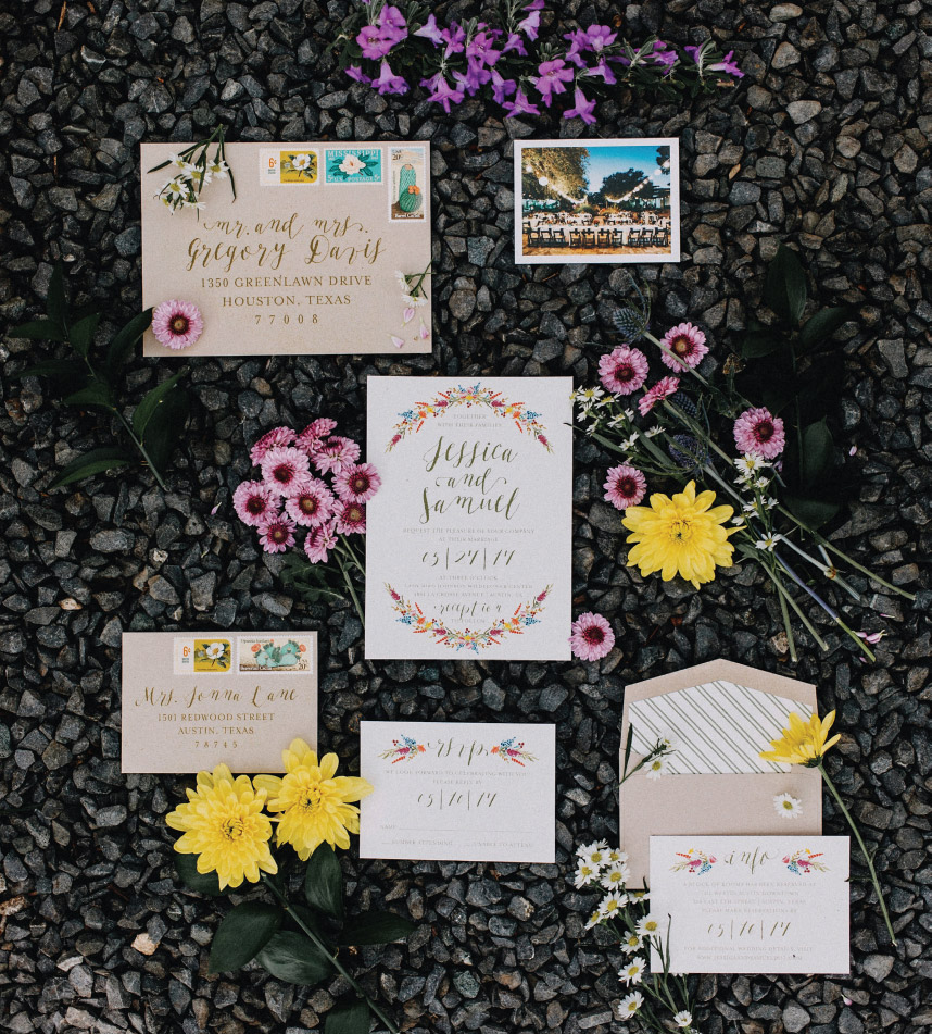 Fall in love with the beautiful blooms on this stunning suite from Peach Paper and Design, a well as at the breathtaking Lady Bird Johnson Wildflower Center.