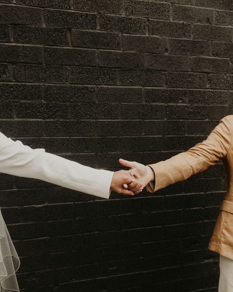 We’re never not blown away by the work of Nikk Nguyen Photo who always captures raw emotion in his imagery, and this modern Austin elopement is no exception! A soft and iridescent color palette takes hold of downtown Austin in these styled scenes where romance and contrasting feminine and masculine details blend together in the most beautiful way. Our bride model takes the spotlight of this iridescent Austin elopement clad in a casual but intentional bridal ensemble consisting of a chic bridal pantsuit from Unbridaled with a drama-filled plunging neckline and paired with the most darling pointed sling-back nude heels. Artful portraits captured light filtering onto her profile and she was an absolute vision in her flower crown and veil. Take a peek at the full gallery down below and read on for what creative Nikk Nguyen Photo had to say about the vision and design behind this iridescent Austin elopement inspiration. Cheers!