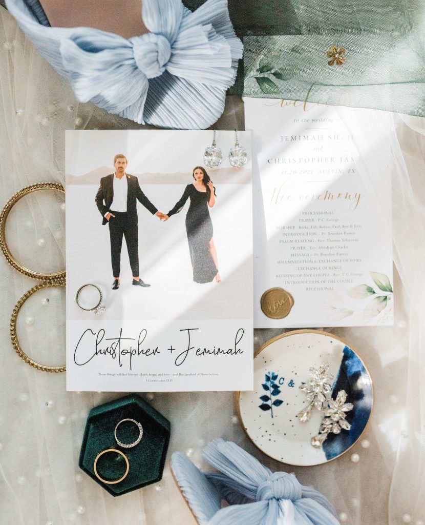 Carhart Photography, Jordan Flowers & Events, Ventura's Bridal, Bella Diamanti, Suit Supply, Blushd Beauty, Limos Of Austin, AC Hotel Hill Country, Rebecca Ingram, Cartier, Diamonds Nexus, Jo's Cakes By Joanna Cherian, Wired Productions, MH Beauty, Pamela Printing, Of Chalk & Pen, Marry Me Brandon, KI Weddings