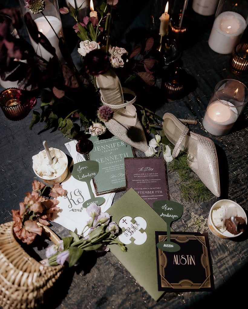 “Jenn + Ken dreamed of a celebration that broke away from traditional norms, embracing a moody Great Gatsby vibe with a touch of worldly flair. Jenn and Ken’s wedding was a reflection of their love for each other, their adventurous spirits, and their desire to create something uniquely their own. It was an unforgettable night—filled with love, laughter, and a flair for the extraordinary!”