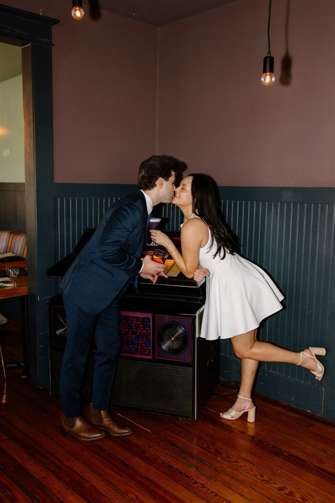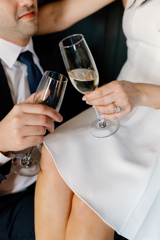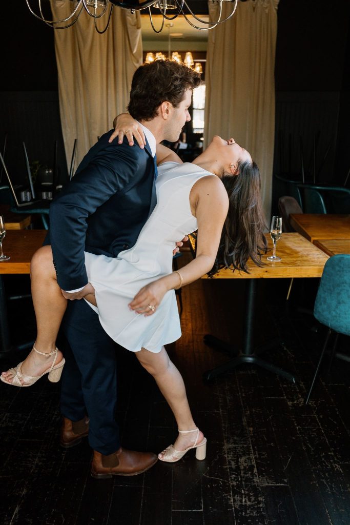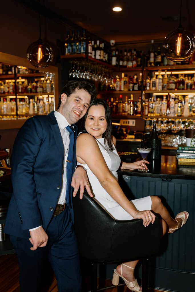 These two tied the knot in the coziest little bar, where soft light, champagne bubbles, and stolen glances made the perfect atmosphere. From their quiet, emotional vows to their celebratory cheers (and a little dancing between bar stools), this elopement was effortlessly chic and wildly romantic.