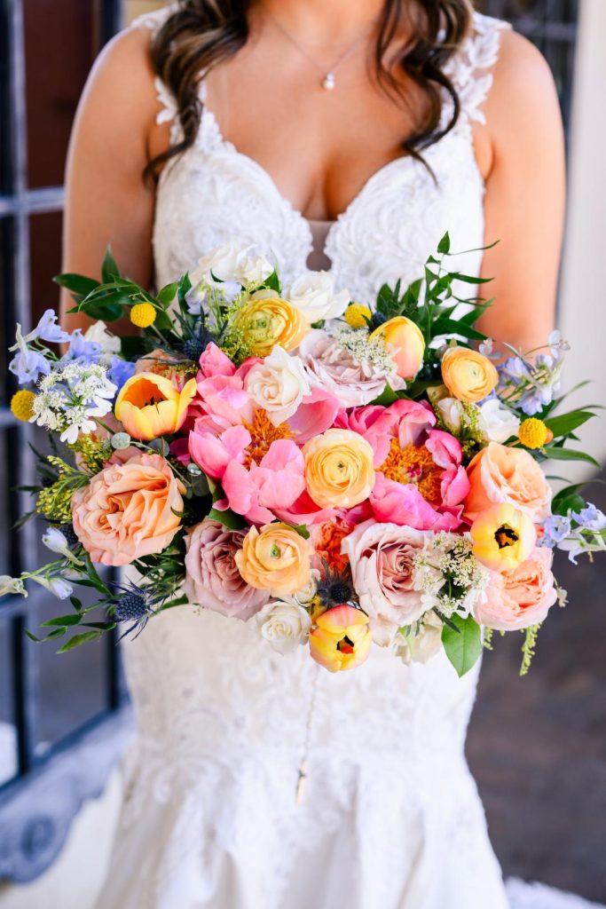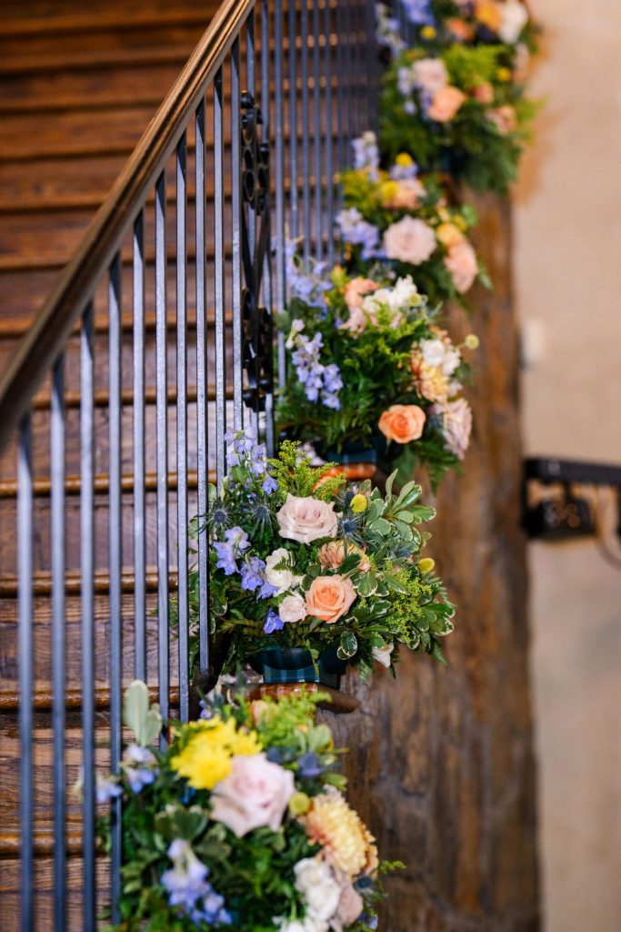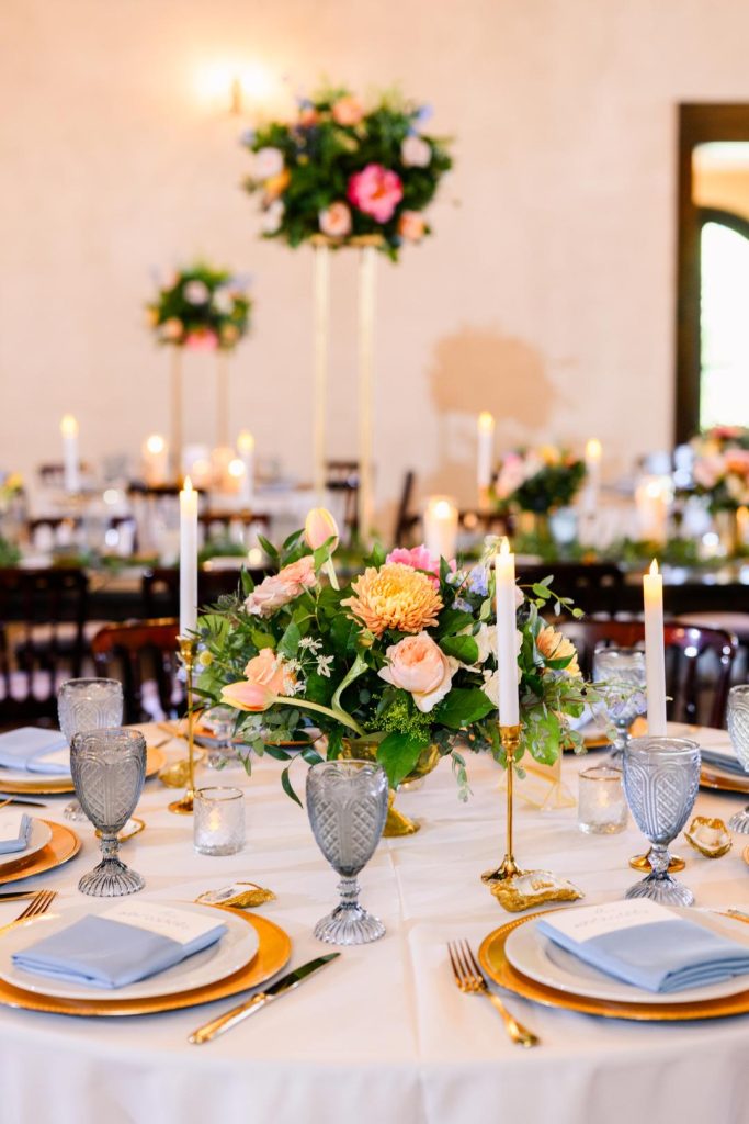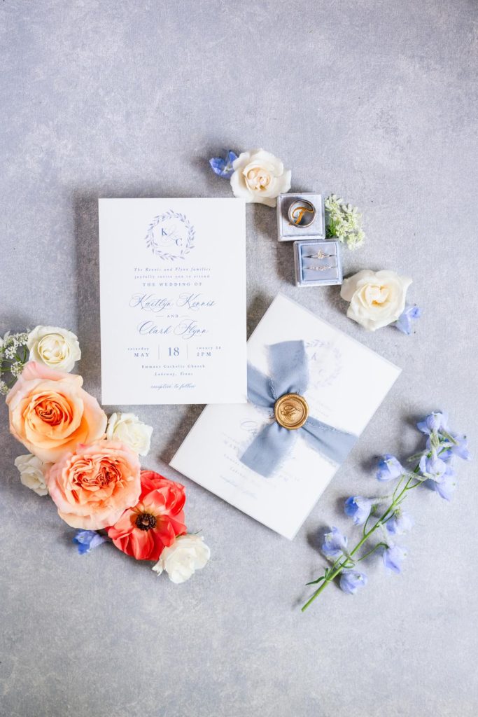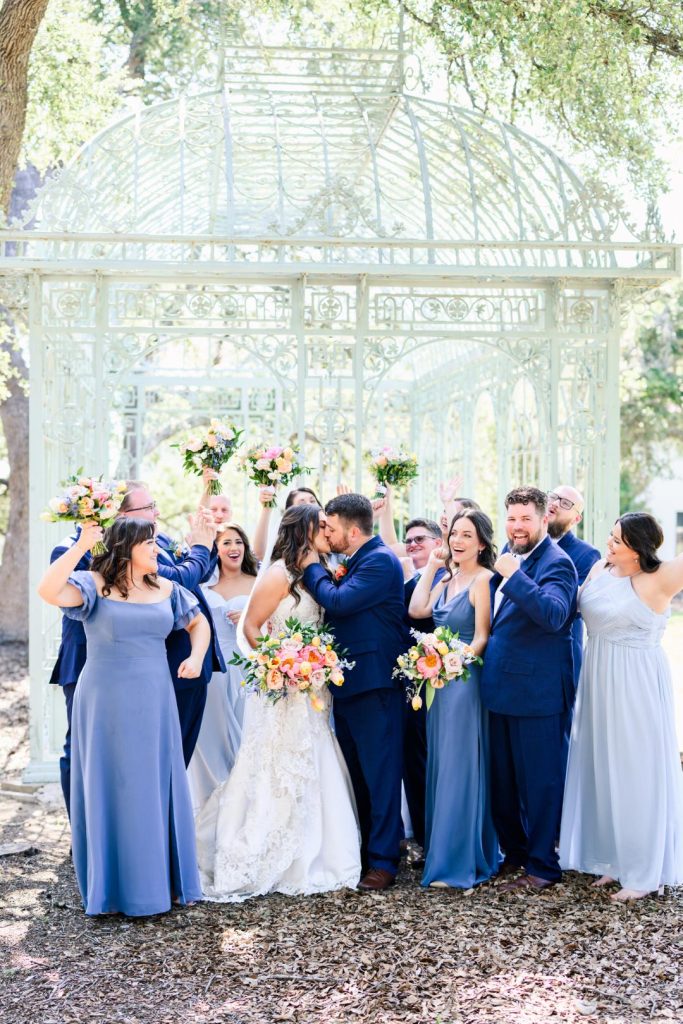 Drawing inspiration from nature and the serene beauty of springtime, the couple chose a sophisticated palette of dusty blue, cornflower, and icy pastels. Kaitlyn’s flowing chiffon gown with delicate blue embroidery to the bridesmaids’ dresses in varying shades of blue, every detail reflected calm elegance. The groom and groomsmen complemented the theme with classic navy suits and slate-gray accents.