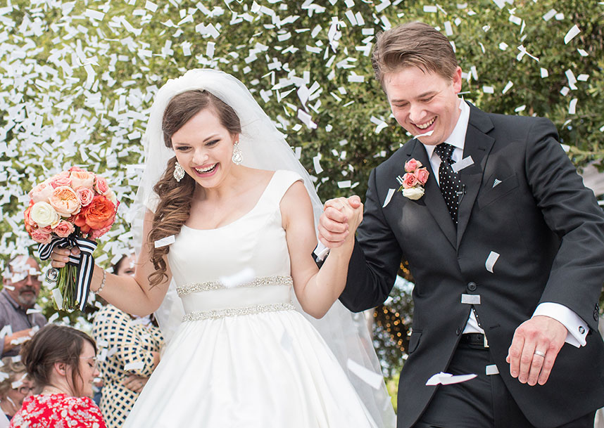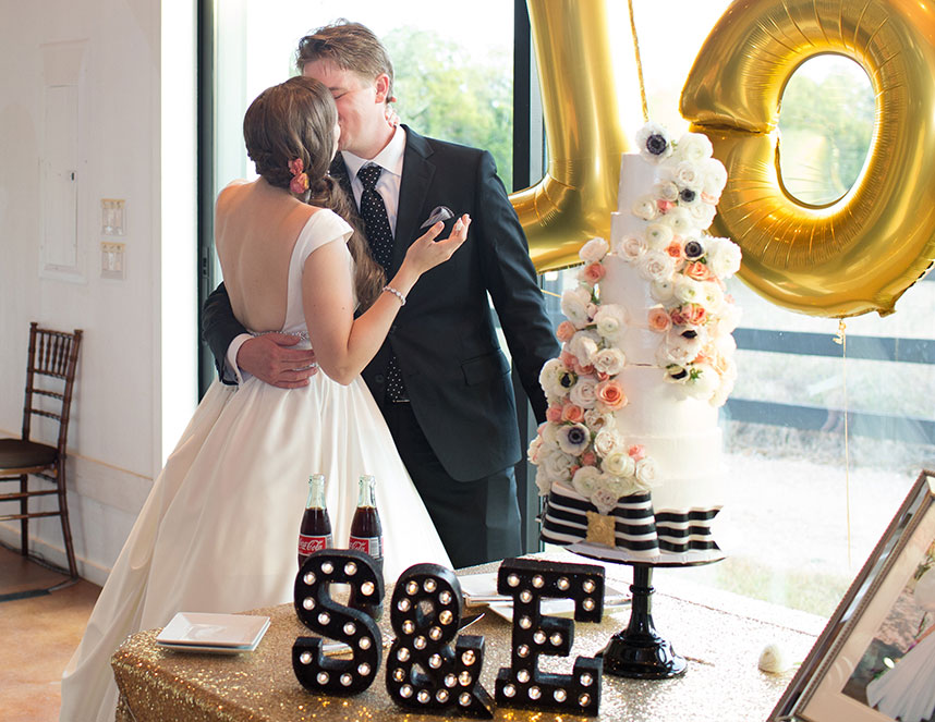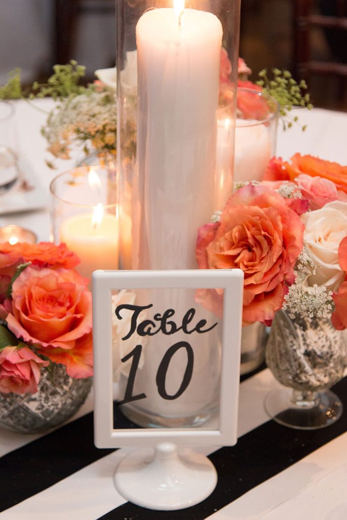 KATE SPADE INSPIRATION: Erika and Seth didn’t have a precise theme but they were definitely influenced by the designs of Kate Spade. There were stripes, polka dots, metallics, and black and white mixed with pops of coral. They wanted a very traditional look, yet also fun!