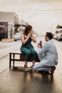 We were on vacation in Costa Rica, our first vacation since the pandemic hit. We were staying in an incredible house with our favorite people. Greg woke up early to go surfing on our first morning there, and I stayed behind since I’m not an early bird. I heard him come back in from surfing but kept my eye mask on because I wasn’t ready to wake up quite yet. Greg came and sat on the bed next to me and told me good morning. He went on with his profession of love, but in such a way that I thought he was just sweetly waking me up on our first day of vacation. He then proceeded to say, “and that’s why I want you to be wife,” and pulled out my DREAM ring (I had told him many, many times what I wanted, and he listened well). I immediately burst into tears and, in pure shock, said, “are you serious?” I couldn’t believe it was finally happening! I sat there crying for a bit before I could get out a “yes.” We then went out to a beautiful breakfast spread under the palapa and celebrated with some bubbles! Greg and I dated for almost five years when we got engaged. I’m a huge romantic, and so, of course, I had the perfect idea of how I wanted to be proposed to, and I made sure that Greg knew my idea of the perfect proposal. He fulfilled my dream with his sweet, intimate proposal. He had tried to switch things up by proposing under the palapa at sunset, but his plans had been derailed. Everything ended up working out for the best, and I couldn’t have asked for a better day.