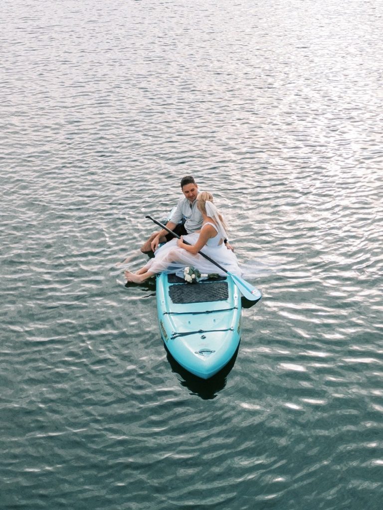 Talk about making a splash! 🛶 Kirby and Corey tied the knot on paddleboards right on Lady Bird Lake. With guests cheering from kayaks and lining the docks, it was a ceremony to remember. Afterward, they headed to dry land for a quick change into a traditional gown and tux to dance the night away.