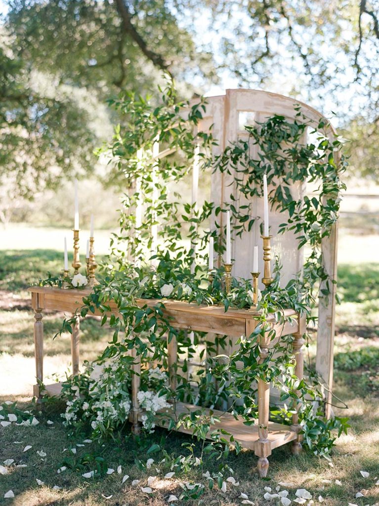 Kristin and Rudy’s vintage vineyard Austin wedding is super dreamy with lush florals from The Flower Girl adorning the picturesque outdoor setting. The palette of neutrals with pops of navy and gold really shines against a backdrop of gorgeous greenery, this sweet couple had quite the celebration! Cheers to Kristin and Rudy!