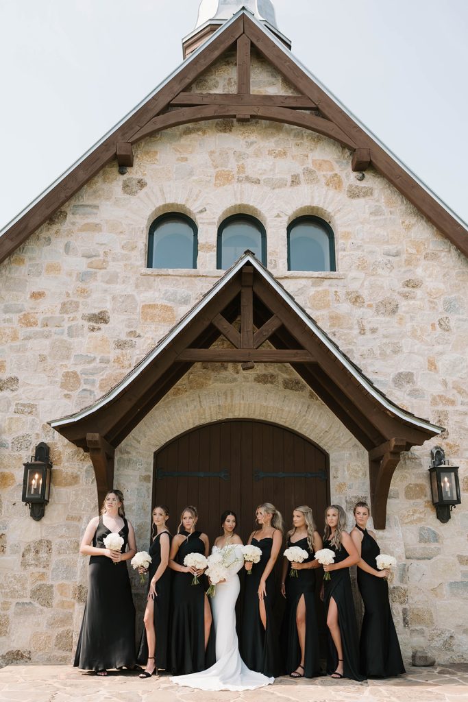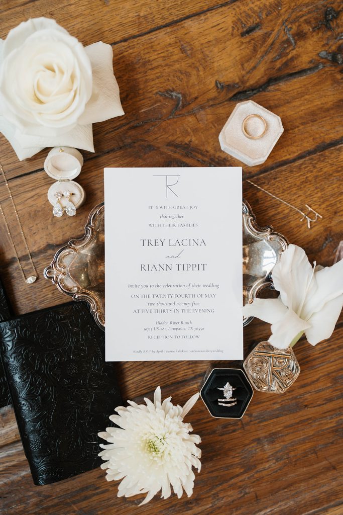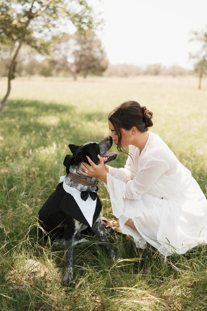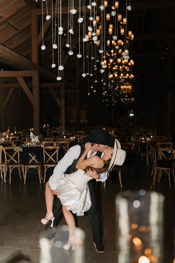The Lacina’s celebrated a romantic western wedding at Hidden River Ranch, complete with lush white florals and striking black details — from the bridesmaid dresses to the linens. One of our favorite moments? Riann’s outfit change into a chic, shorter reception dress made for dancing, plus their sweet pup stealing the show in a tiny tuxedo.