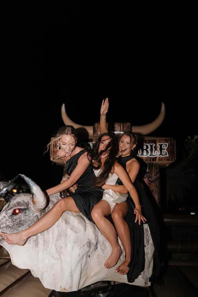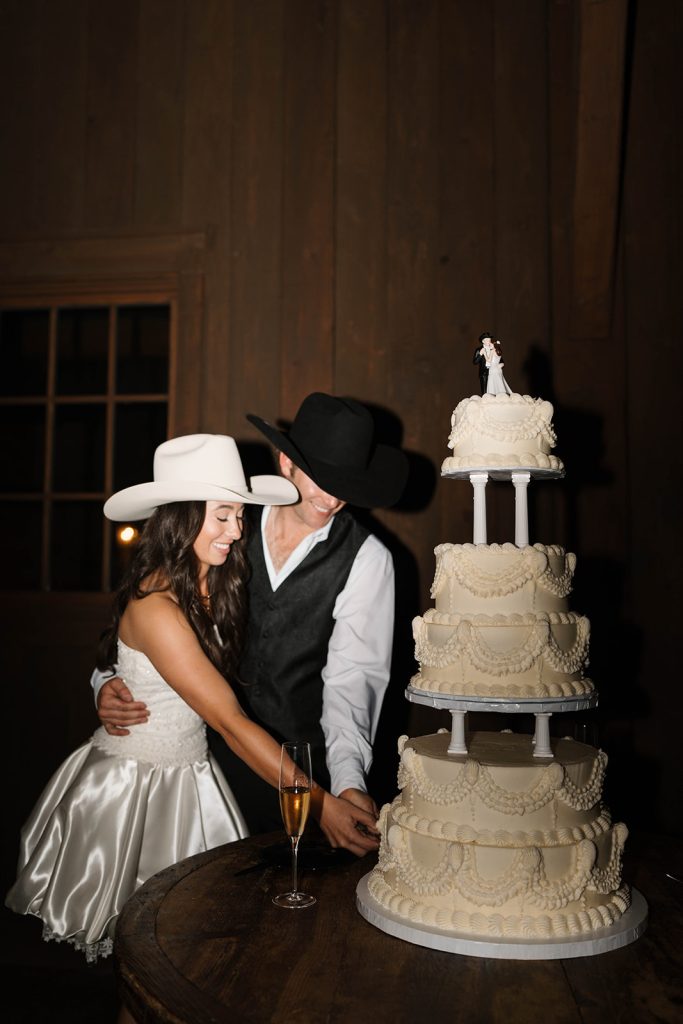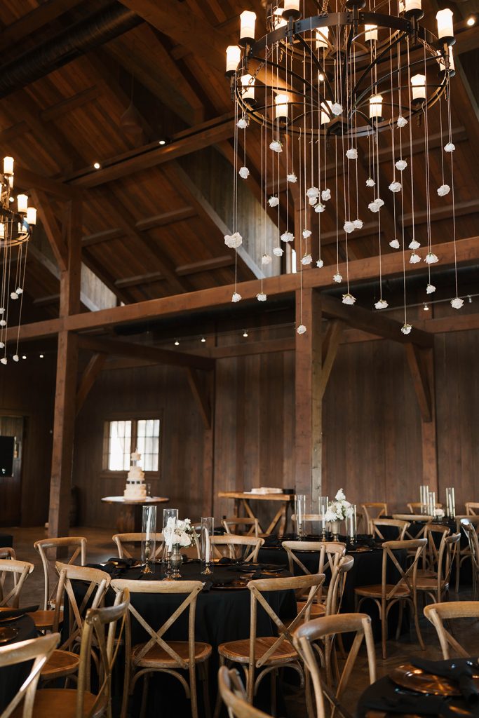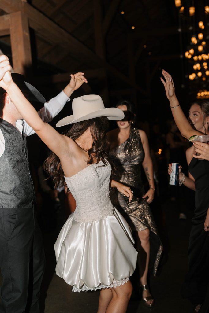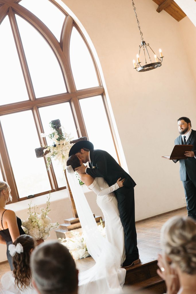The Lacina’s celebrated a romantic western wedding at Hidden River Ranch, complete with lush white florals and striking black details — from the bridesmaid dresses to the linens. One of our favorite moments? Riann’s outfit change into a chic, shorter reception dress made for dancing, plus their sweet pup stealing the show in a tiny tuxedo.
