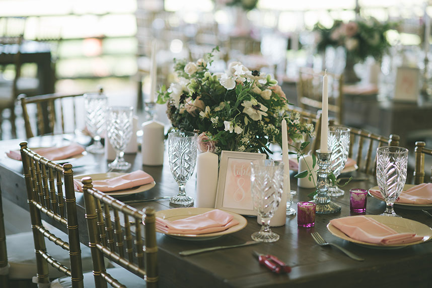 HUES TO USE: Lindsay wanted their wedding to be romantic and whimsical with an emphasis on floral designs. She used hues of porcelain, blush, mauve, olive, moss, wine and indigo to give their wedding a romantic feel.