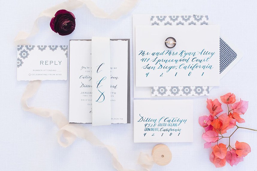 From the initial design details to the last finishing flourishes, calligrapher and designer Kelli Coyle of Design to Flourish is ready to collaborate for your wedding stationery needs! Invitations, signage, envelope addressing, Kelli does it all!