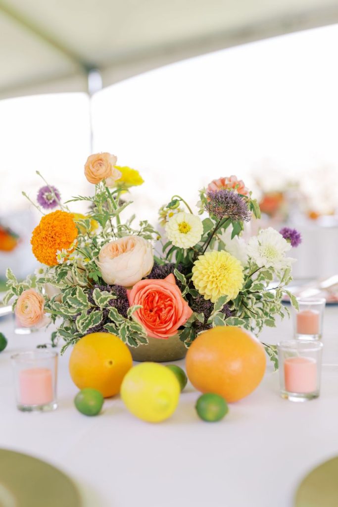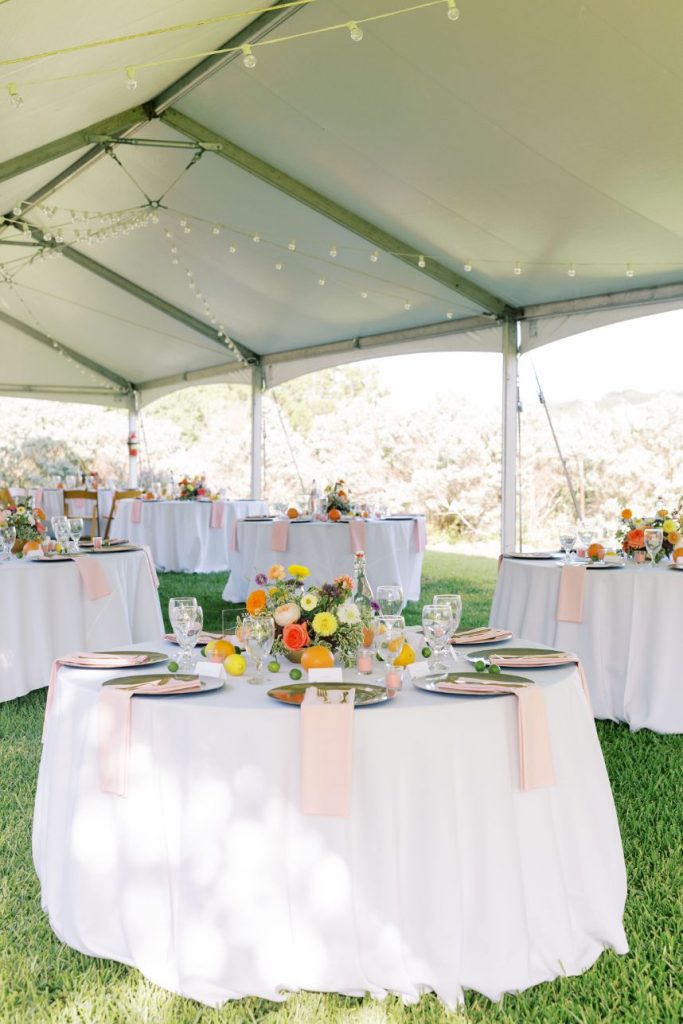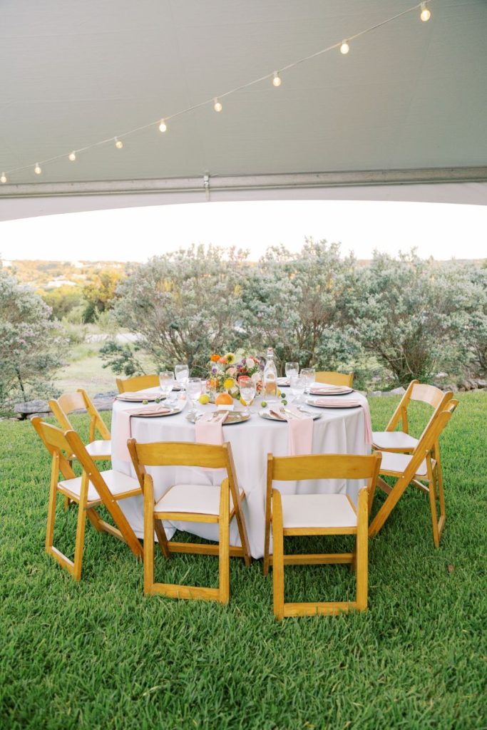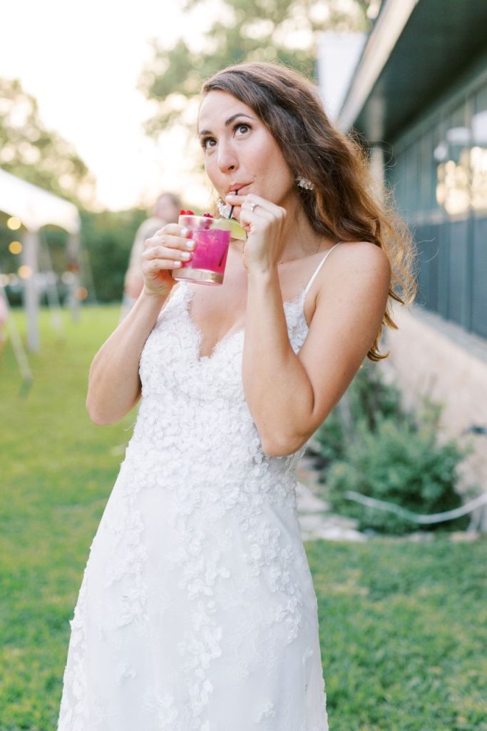 A magical cotton candy sky set the mood for dinner on the front lawn, covered by a beautiful white tent. Dinner tables contained pink, orange, and yellow local grown flowers with beautiful table signs made by Maggie’s brother. After listening to Maggie’s father’s legendary speech, it was time to cut the cake from 2Tarts Bakery. Maggie describes this moment as “a picturesque wedding cake cutting moment. I didn’t realize how much happiness I would get from that tiny moment, but the cake was dreamy and unbelievably tasty.” The couple danced on the patio and even performed music themselves for guests. Maggie and Keaton ended the night with a quiet, dark, barefoot walk to their home while guests hoped on Elegant Worldwide Transportation back to their accommodations. Monica Roberts Photography captured all the magical moments that you must see below. Cheers to the new Mr. and Mrs. Ainsworth.