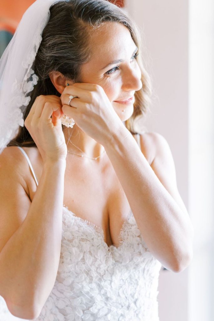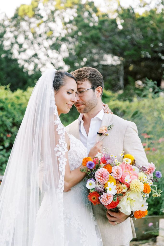 Saying “I do” with bright summer blooms in the bride’s family’s backyard made for an unforgettable evening for Maggie and Keaton. The adorable couple’s love story began in April of 2017 when Maggie was invited for a little get-together by a friend after work. After walking up four flights of stairs to the wrong apartment, Maggie, out of breath, finally found the correct one, and no other than Keaton opened the door for her. The sparks flew between Maggie and Keaton as they bonded over being teachers and musicians. The two were madly in love a few dates later and knew they had found their forever. After a dreamy engagement at Maggie’s parent’s lake house, the two set to say their I do’s with a June garden party wedding. Although the couple feared possible thunderstorms for their outdoor wedding all day, the rain held off for a truly magical day.