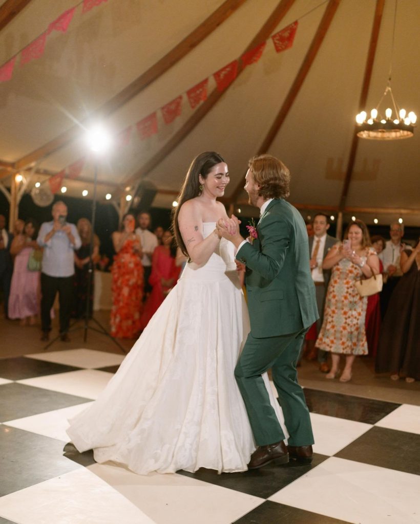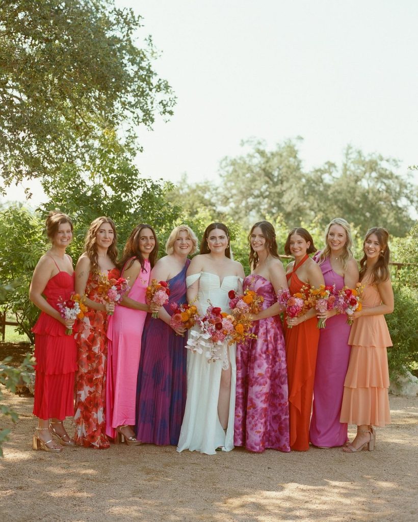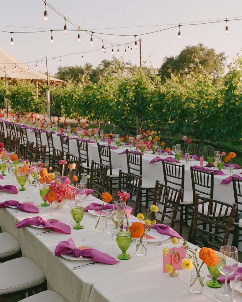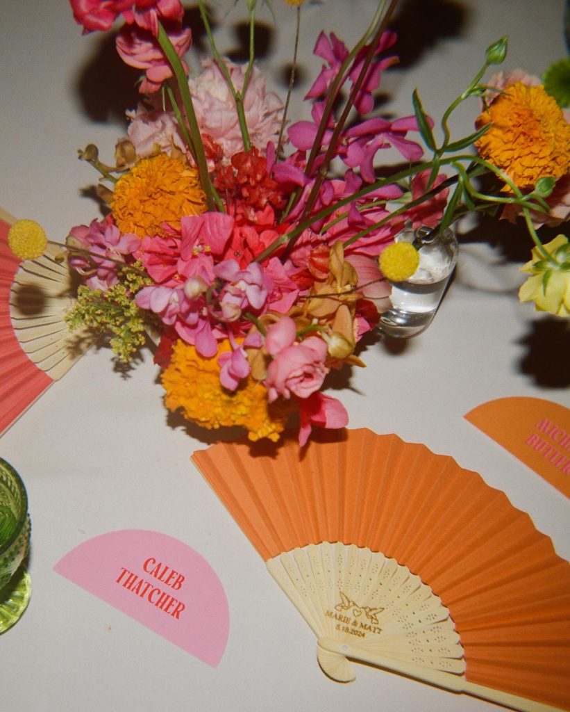 Marie and Matt’s wedding celebration was an absolute vibe! The vibrant pinks and oranges, paired with Matt’s bold green suit, created such a lively and fun atmosphere. It was truly a celebration full of energy and style! ??