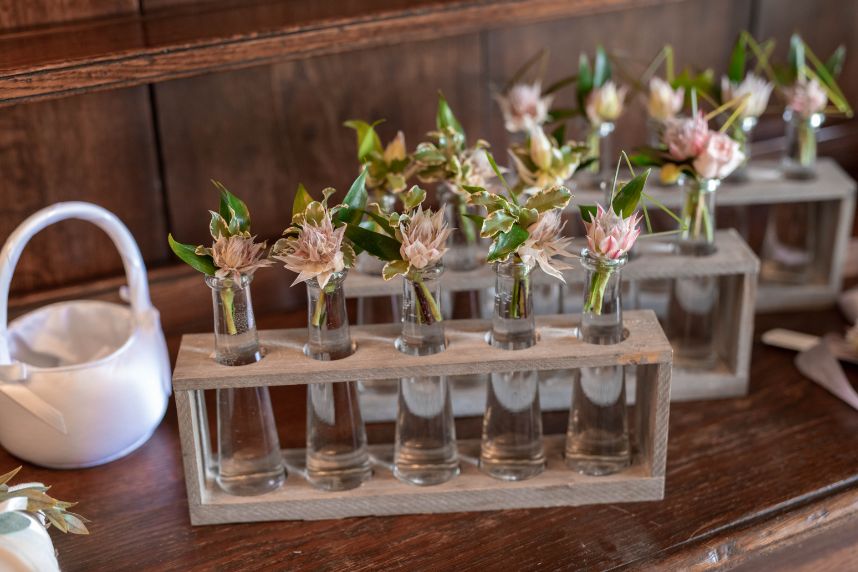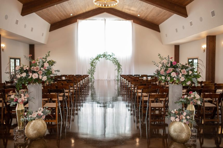 From the bride: “After the first look pictures with Ed and our friends and family, I was able to get a sneak peek of what the chapel looked like after Flora Fetish worked their magic! The Flora Fetish team were some of my favorite vendors to work with and when I tried to thank them for everything, I couldn’t get the words out without crying and I was just beyond thankful for them!”