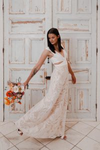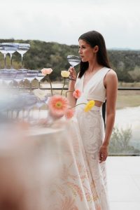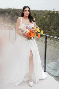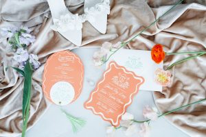 With a unique spin on wedding maximalism, the creative vision came to life through layers of texture, rich palettes, and whimsical details. Wild Flower Bridal Studio brought the fashion flair, showcasing three stunning gowns that perfectly matched the energy of each bold setup. The look was tied together with stunning invitations from Cojo Moxon and signage by Grace Kate Design Co., adding an extra touch of artistry to the design.