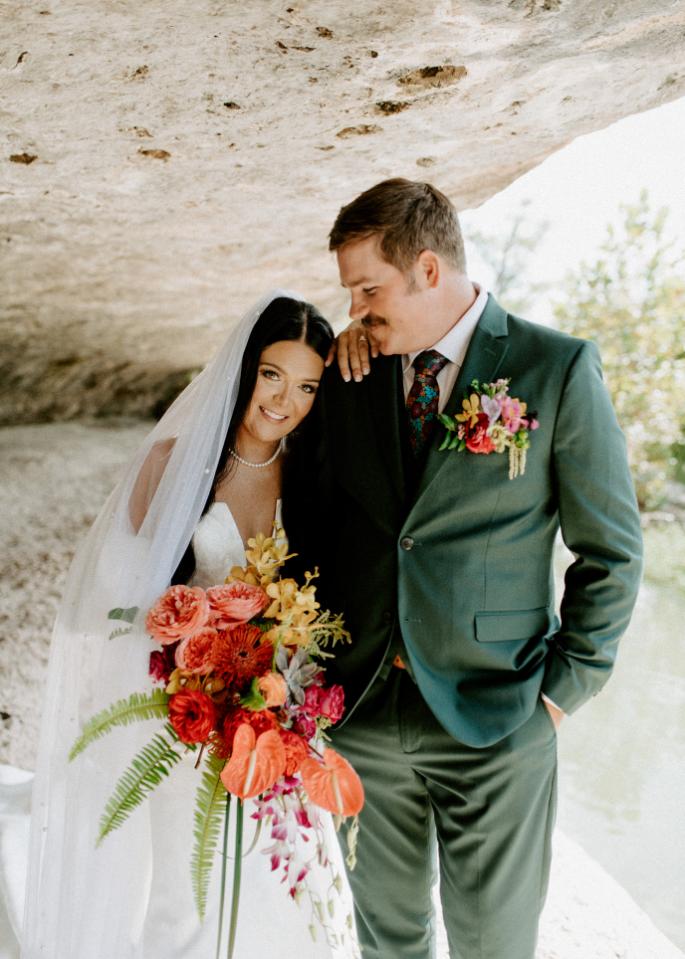 Hunter and Blake’s wedding was an explosion of color, creativity, and joy — the kind of celebration that perfectly reflected their personalities. Set against the natural beauty of Cypress Falls, their day blended bold design choices with meaningful, personal touches that made every moment unforgettable.