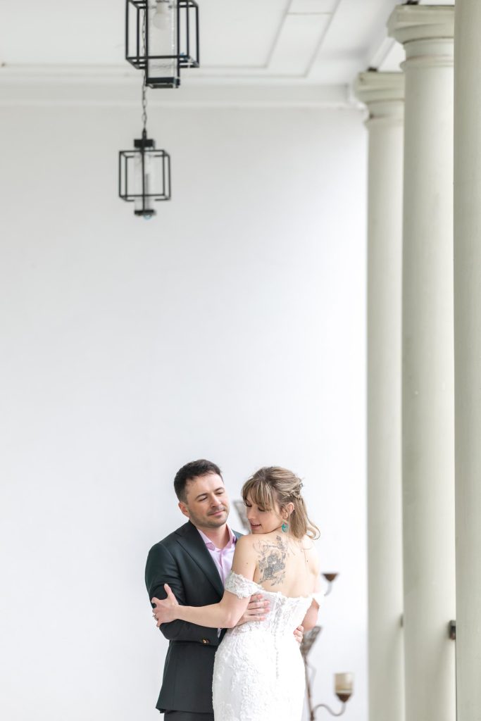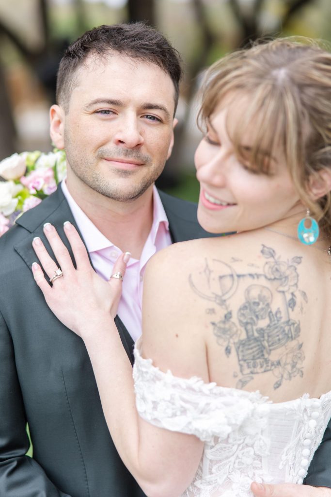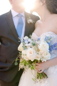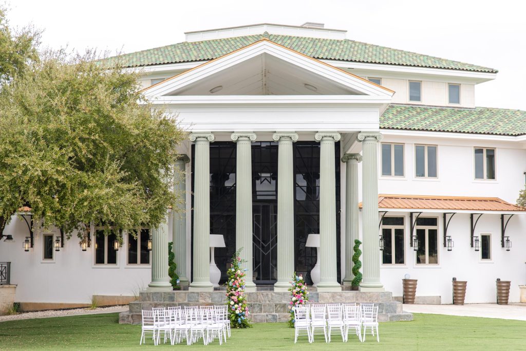 Michael and Mackenzie had a gorgeous ceremony, complete with white garden chairs and beautifully crafted floral designs.