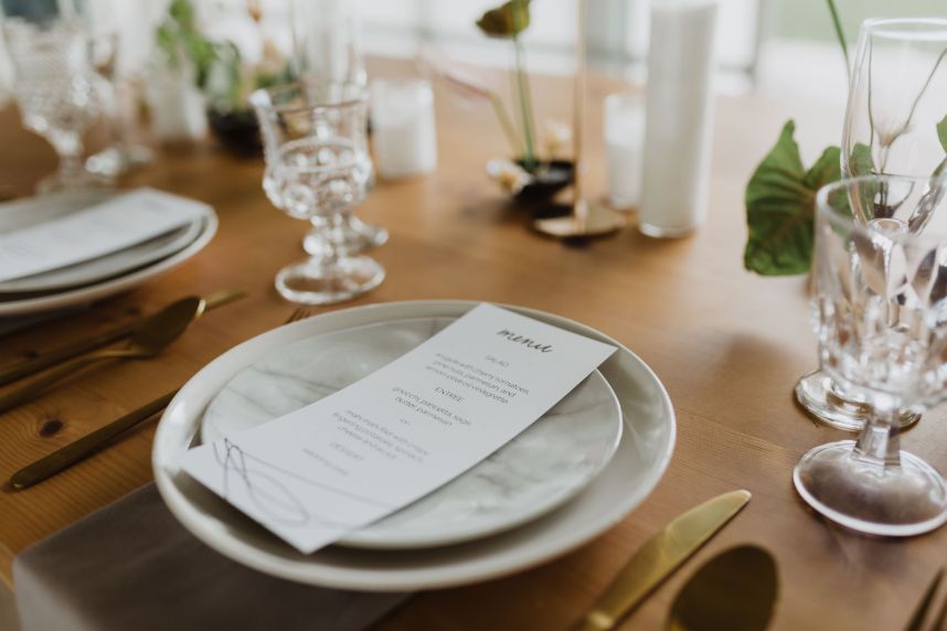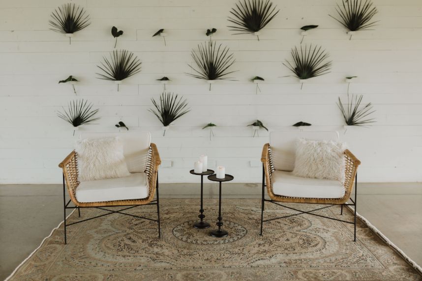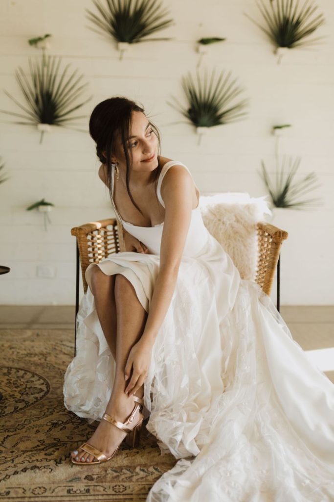 Sometimes less really is more, and this minimalistic-chic wedding inspiration from Events by Leslie is proof of that! With a neutral color palette incorporating palm fronds and calm tones like blush and slate, but also flashier touches of rose gold and crystal, your eyes are naturally drawn to all the most important places. This bride’s simple yet nontraditional satin dress from Unbridaled is edged with lace and features intricate embroidery down the skirt making it just as feminine as it is chic. The stunning look is completed with the most stunning gold, geometric jewelry from On a Limb Creative. Calligraphy on oat-colored stationery by Owl & Envelope adds a modern, organic feel to both invitations and to the wedding itself, and we love the way simple, wicker pieces from Scavenged Vintage Rentals instantly add more texture and natural feel to a room. Make guests feel even more homey with faux-fur throw pillows! These contrast perfectly with luxe marble, crystal and gold flatware that decorate an ultra-mod tablescape. Greenery by Bricolage Curated Florals is just the cherry on top of this modern wedding scene. With calla lilies, baby’s breath, the bride’s whimsical, monochromatic bouquet and lush fronds galore, these florals all work to bring even more life and romance into this minimalistic wedding shoot. This subtle wedding is sure to wow your guests without being overwhelming, plus keep you in the spotlight where you belong. Cheers!