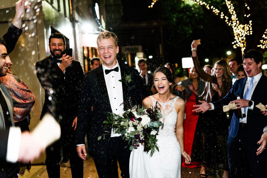 From the bride: “During the reception the playlist from Dart Collective was so good and had everyone dancing so hard that the actual floor of the venue began to shake! We had food stations from Royal Fig Catering and a mix of tables to make sure all of our family and friends could socialize. We wanted everyone to feel like they could eat and drink when and where they wanted.”