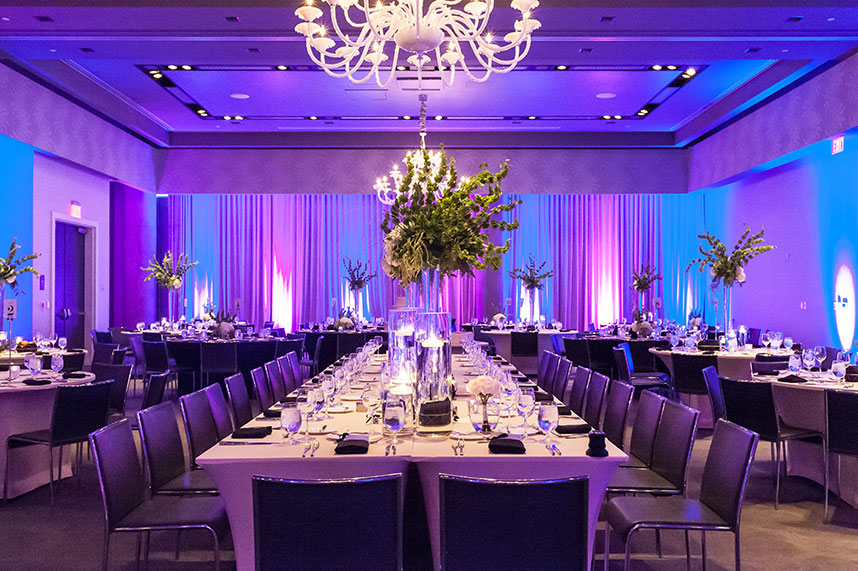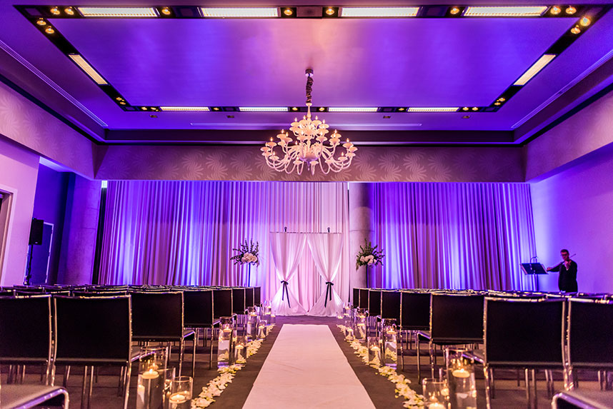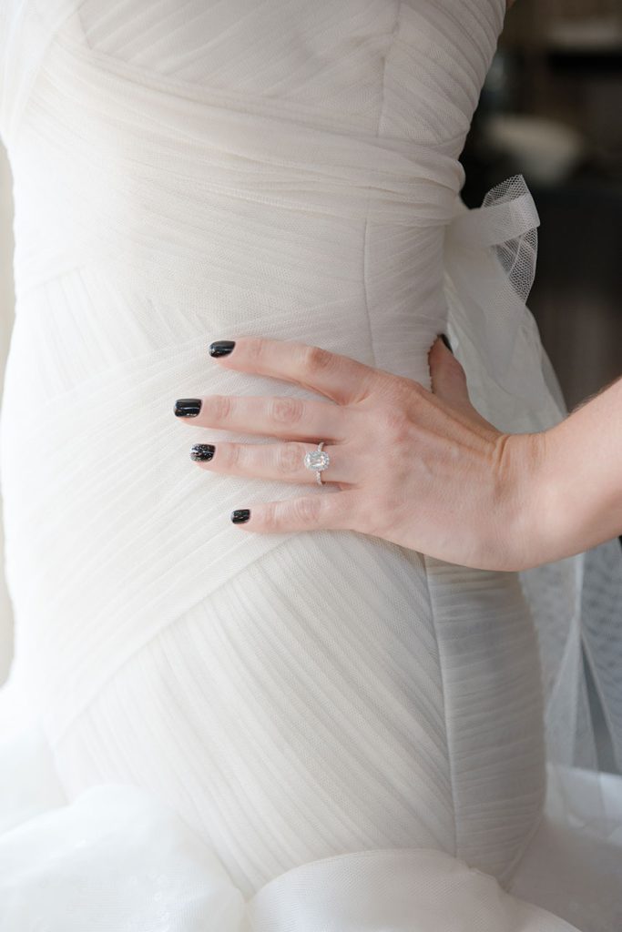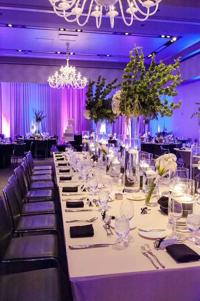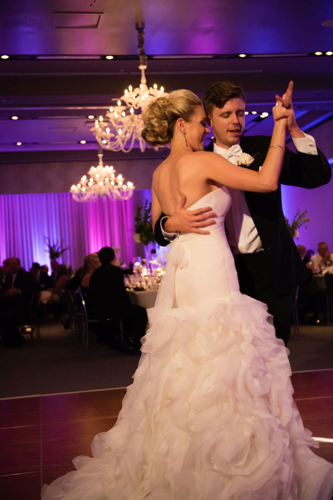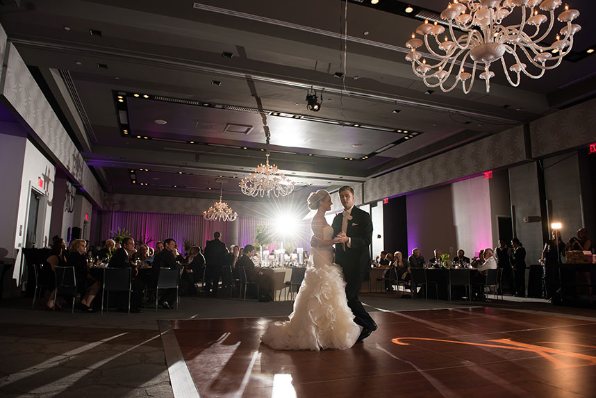 THE SETTING: Lauren and Dale had a non-traditional, modern black and white wedding at the W Austin. Black cocktail attire was required for their guests. They had giant black and white balloons that filled the room during the cocktail hour, and giant Jenga and cornhole were set up for entertainment during the reception!