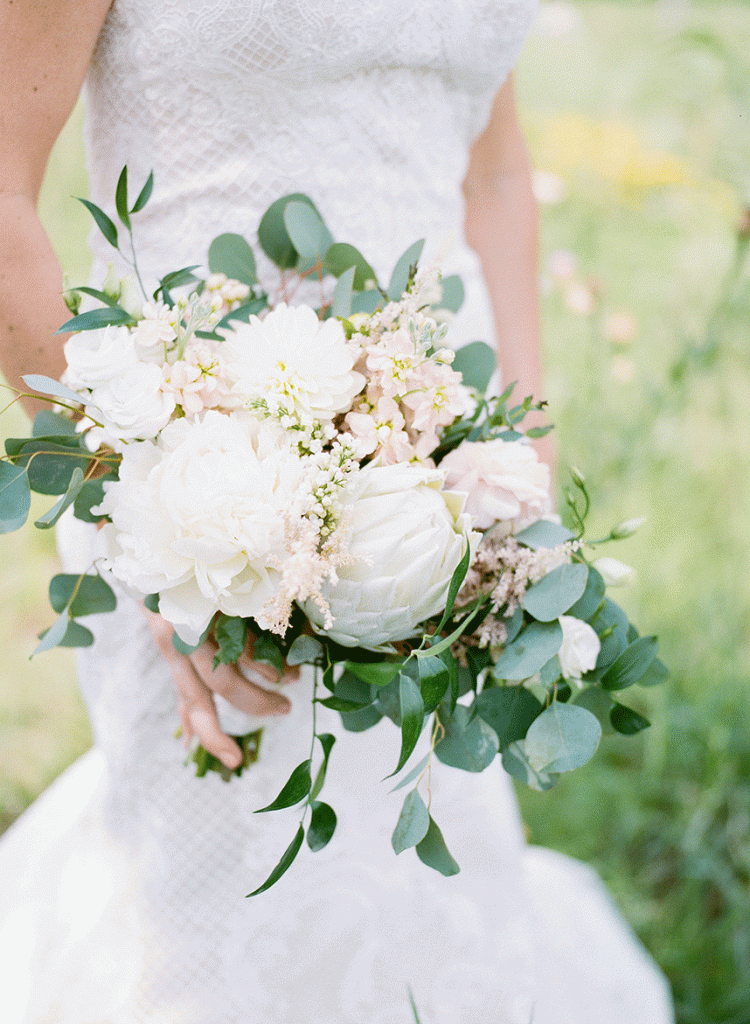 Brianne and Nick’s modern boho Austin wedding was a breath of fresh air.  With the romantic atmosphere, special touches and gorgeous light hues, the couple’s big day felt like an ode to spring. The bride looked stunning in her strapless, sweetheart gown from Serendipity Bridal and carried a lovely pale arrangement of snow white protea, peonies, white lilac, ranunculus and jasmine by Remi + Gold. The reception scene was set thanks to an abundance of greenery, also from Remi + Gold, and rows of vintage brass candlesticks from Marquee Event Group. See all the gorgeousness from the day captured by Krystle Akin Photography below, along with the couple’s wedding highlight video from The McKellars. Enjoy!