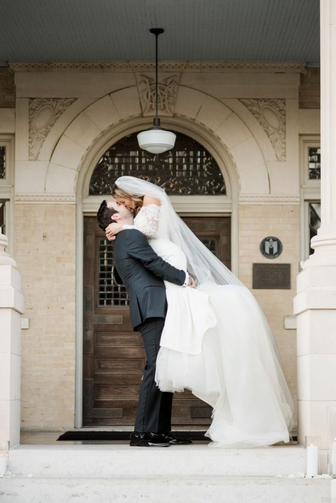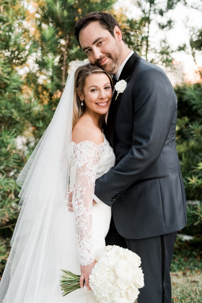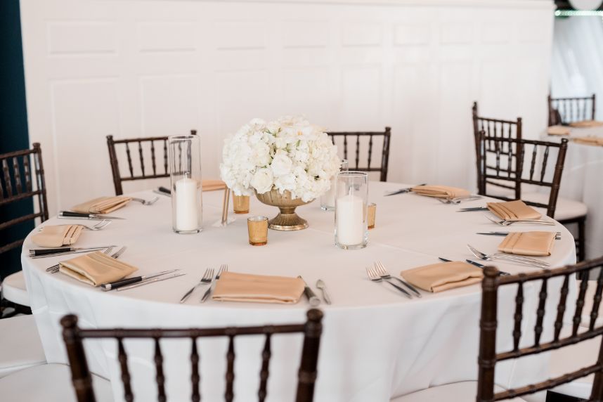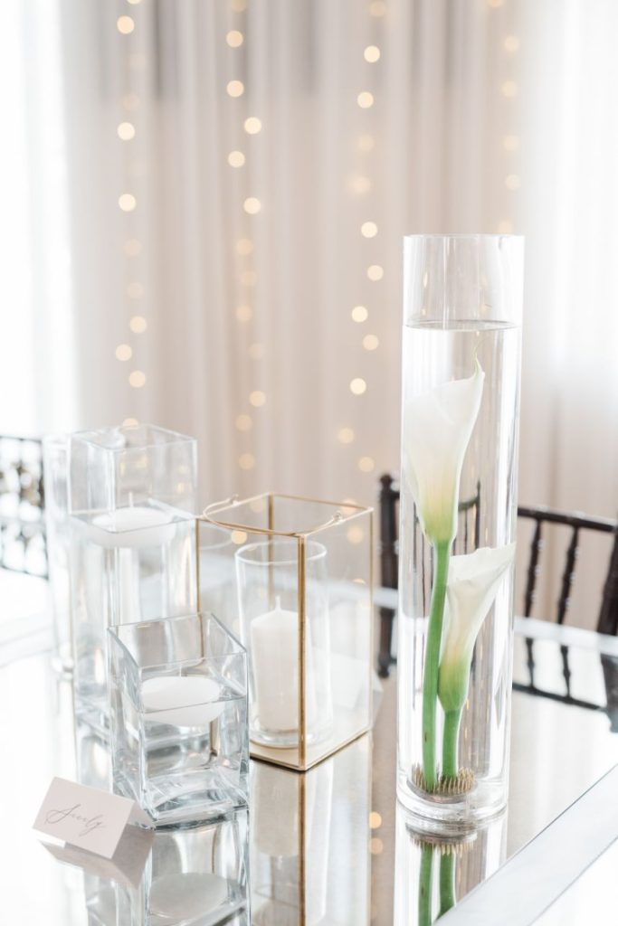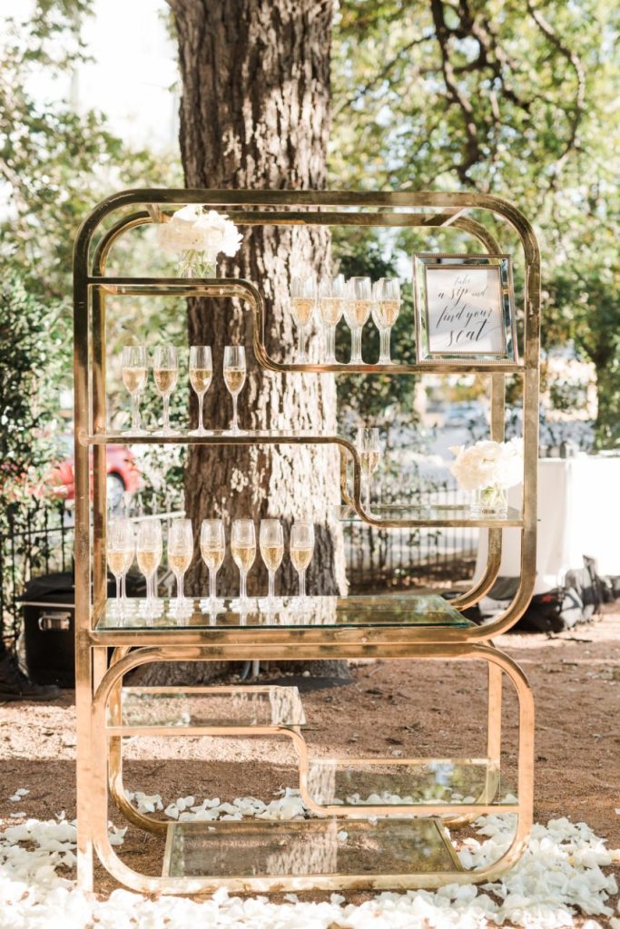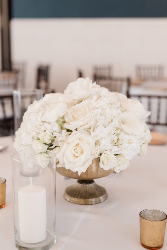 Coordinated by Eclipse Event Co., this classic and elegant wedding with a touch of modern glam was the perfect way to tie the knot for Lindy and Patrick. The wedding was enveloped in romantic elements – like crystal and champagne to name a few – that give this special day an added touch of glamour. Lindy looked exquisite in this fitted lace gown and veil from Bridal Boutique. Marquee Event Rentals transformed the space with some of the most beautiful pieces from the eye-catching gold champagne wall and glowing candle tablescapes with sophisticated cocktail table areas for guests to sip and enjoy the celebration. The entire space was adorned with blooming bouquets of white roses from The Bloom Bar, and the guests enjoyed a three-tiered floral cake from Sweet Treets Bakery. Everywhere you look in this elegant and classy wedding were smiling faces and glam decor! Cheers to the newlyweds!