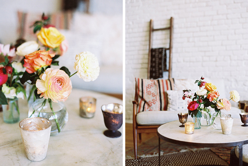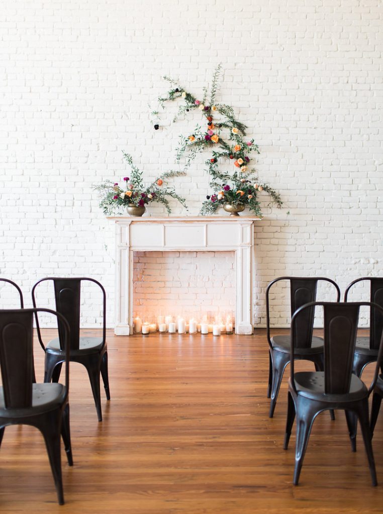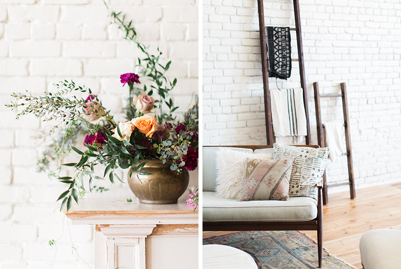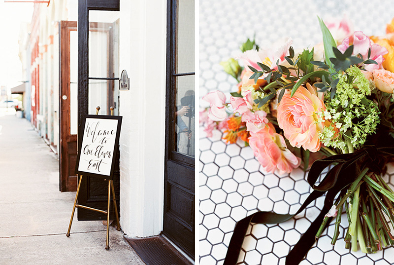 We can’t stop gushing over this modern wedding styled event Bird Dog Wedding planned and designed for the opening at the historic One Eleven East loft! This loft is the perfect blank canvas for any wedding and offers a unique industrial feel with a modern vibe! Rich, organic and refreshing flower arrangements created by the oh-so-talented Margot Blair Floral made the venue pop with color! The food alone was to-die-for! With catering from Contigo Catering, cake and desserts from Green Lily Bakery and a the Lucky Lab Coffee Co. coffee truck parked out front, those attending the opening event certainly didn’t leave hungry! The lounge area with furniture provided by Loot Vintage Rentals is as stunning as it is cozy and intimate, and the tablescape and altar scene complete with rentals from Premiere Events made beautiful focal pieces for the event. Enjoy fawning over these dreamy vignettes and wedding details!