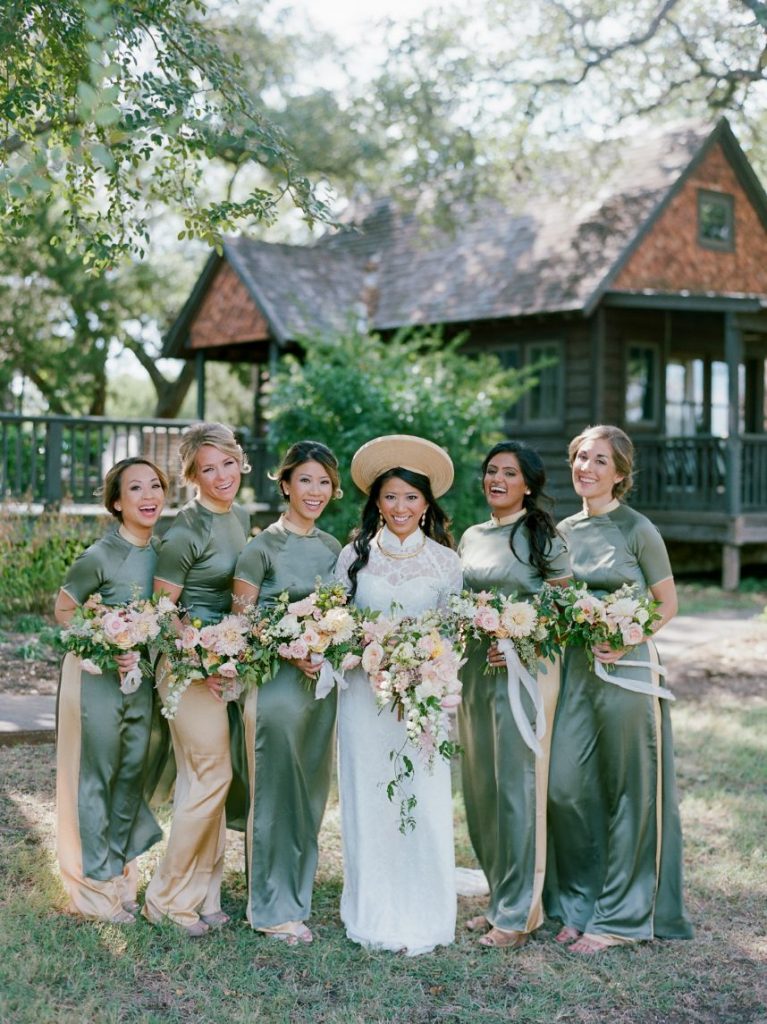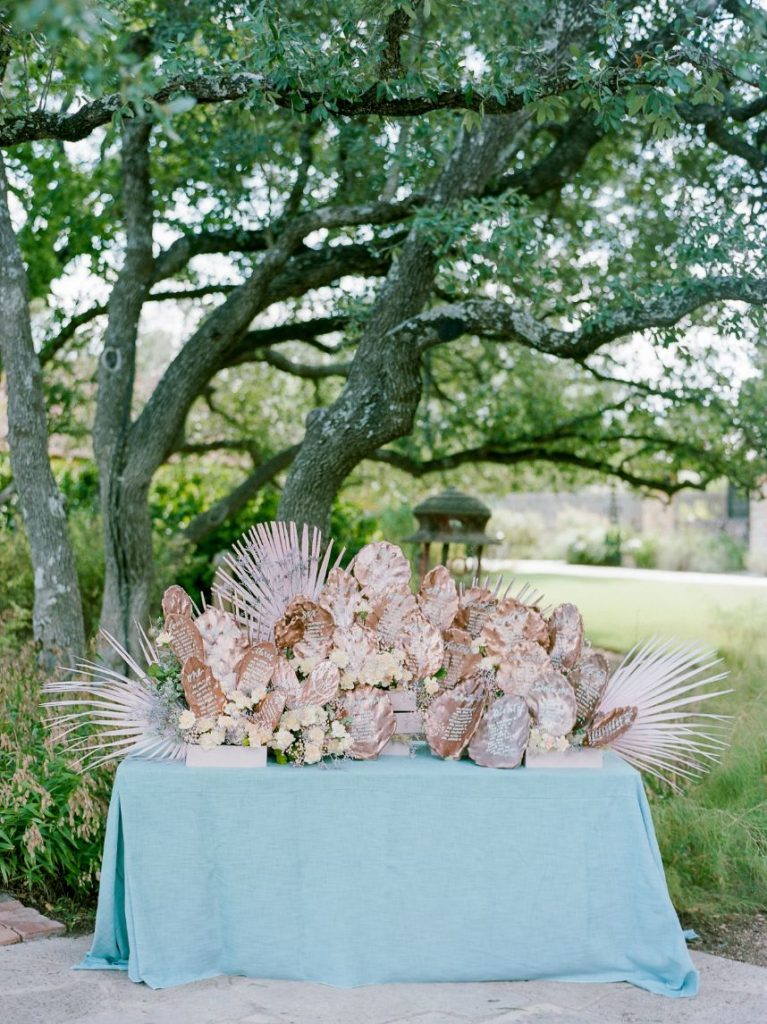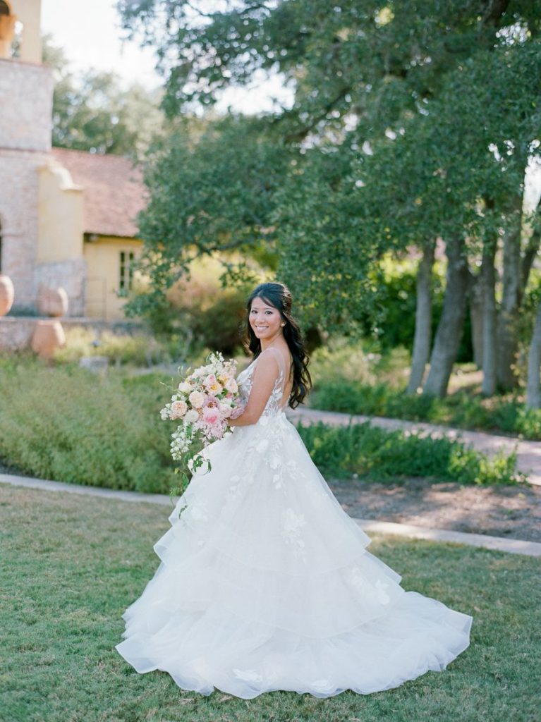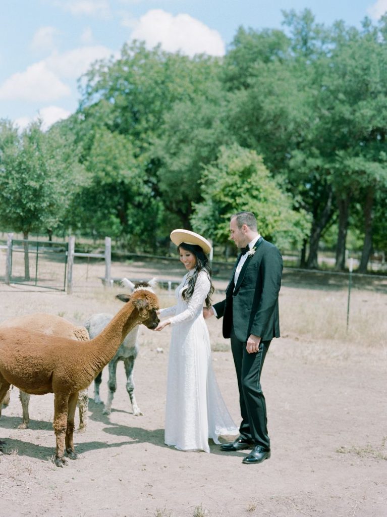 Brides who are into all things desert and cacti will love this multicultural, modern desert wedding! Infused with the bride’s Vietnamese and the groom’s Lebanese heritages, this stunning wedding day is a perfect mixture of both sides in the most modern, beautiful way. To start out the day, guests enjoyed a traditional Vietnamese Catholic Mass, where bridesmaids wore traditional Ao Dais and Kathy wore a custom made traditional Vietnamese gown, before heading to Camp Lucy for their outdoor ceremony and reception. Kathy looked absolutely stunning the entire day, but our favorite outfit of hers has to be her ballgown style, illusion neckline gown from Unbridaled with embroidered lace flowers layered over tulle with a flowing train. Tablescapes adorned with gold beaded chargers and flatware from Whim Hospitality brought in a pop of metallic to complement teal linens and pastel purple, orange and pink florals. You can’t miss their cacti themed seating chart, as it’s truly like no other seating chart we’ve ever seen! After dancing the night away, guests headed to Hotel Van Zandt and JW Marriot Austin, ending the evening on a perfect note. Scroll to see all the modern desert details of Kacey and Alex’s wedding day! Cheers to the Chebaros!