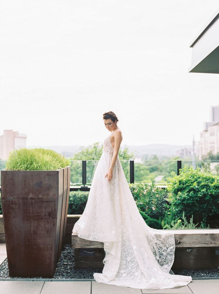Modern, confident, bold and edgy — what better way to describe MUSE, a highly styled, fashion-focused editorial tucked within the pages of the Brides of Austin 5th anniversary issue! The lovely Mint Photography captured each bridal look in a vogue, high fashion-esque style. The gowns stole the show, of course, with structured contemporary numbers from Julian GoldMoonlight and MossBeatitude Bridal Boutique, a sultry lace design from Blush Bridal Lounge and one from Unbridaled covered in the most dreamy metallic beading. Bricolage Curated Florals created unique designs to complement but not overpower each look, with lavender, blush and other pastel tones livening up the sleek scene at Hotel Van Zandt in downtown Austin. Accessorizing with pizazz, fine jewelry by Nicole Mera and bold hair and makeup from Gloss Beauty Boutique completed the looks beautifully. Be sure to watch the video highlight reel from The Bird and The Bear to see more gorgeous shots and behind the scenes captures, and find more modern bridal fashion tips sprinkled throughout the editorial within this celebratory issue! Cheers!