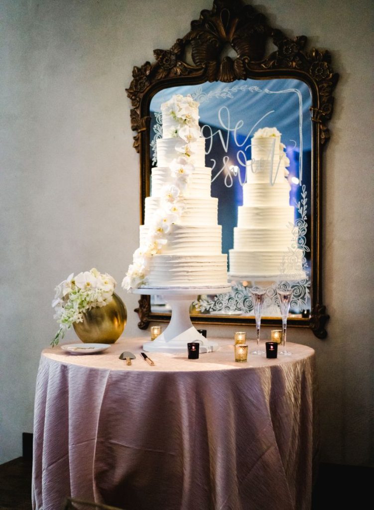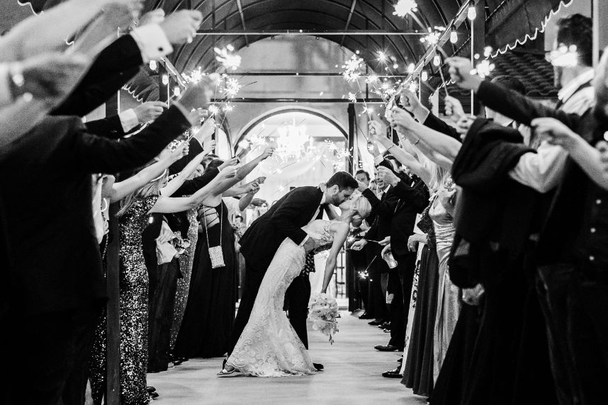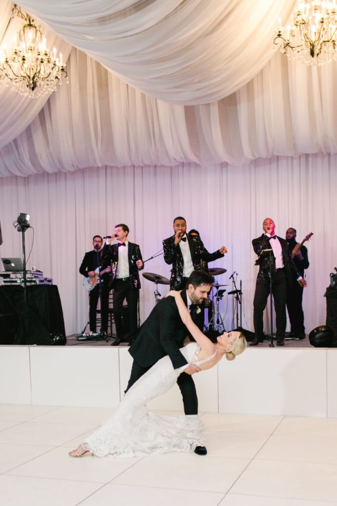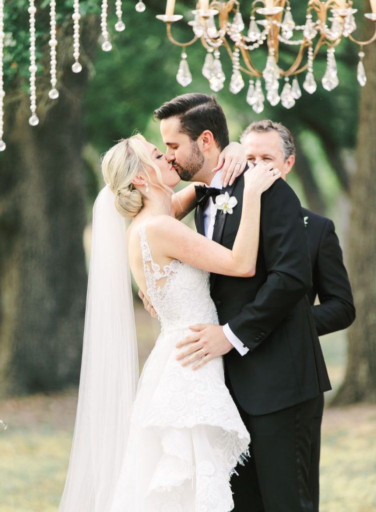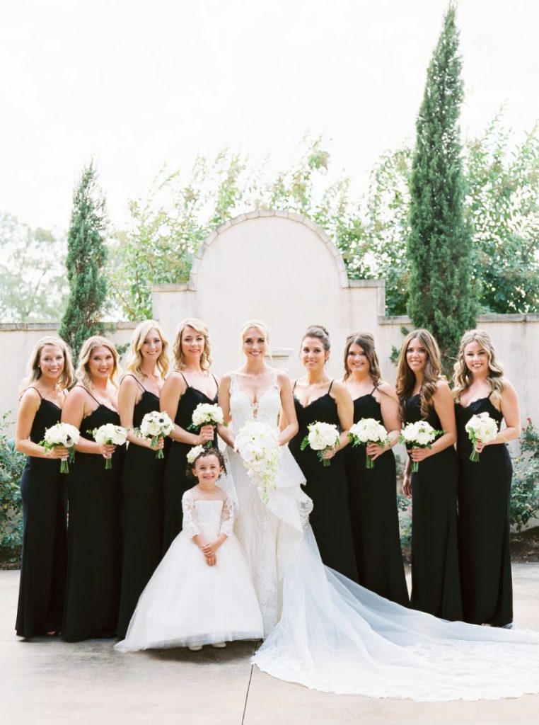 Rachael and Stephen knew just how to knock their wedding guests’ socks off on their big day; with a choreographed dance to a classic hit! Keep reading for the sweet deets. Their gorgeous wedding full of modern romance was held at Ma Maison, nestled just outside of Austin in a Provence-like region of Hill Country that reminisces on that of southern France. Pairing the far-off feel of the venue with the rustic interior and modern black decor from Marquee Event Rentals – Austin creates a perfect recipe for the most picturesque wedding! Rachael looks absolutely radiant in a slimmed-down ballgown from Serendipity Bridal featuring a deep V-neck as well as a custom royal-length veil that was practically made for her! Collaborating with Crave Catering for bartending and catering services, the couple’s cocktail menu featured cute sketches of their dogs, which each signature cocktail was named after! So cute! Rachael and Stephen also opted for two cakes from Sweet Treets Bakery – a stunning six-tiered white wedding cake trimmed with fresh floral as well as a towering groom’s cake modeled after the University of Texas Tower, both bride and groom’s alma mater. From the big, classic blooms accenting the aisle to the elevated arrangements above gilded tablescapes, Flora Fetish creates fabulous floral design for any area of your venue! Though there were so many stunning elements in this big day, the couple says their first dance was one of the things they were most excited for. “We wanted to do something fun and thought what better song to dance to on September 21st than the song ‘September’ by Earth, Wind & Fire!” Rachael said. “We both enjoy dancing so we worked with a dance instructor to choreograph a full Cha-Cha routine. Incorporating more advanced spins and footwork was fun to learn and was a great crowd-pleaser!” This crowd definitely looks pleased and we wish we could have had a front-row seat to watch these love birds dance their wedding night away. With the entire elegant affair captured by Mint Photography, it’s impossible not to fall in love with these dreamy wedding scenes. Keep reading for a note from the bride about her favorite wedding vendor! Cheers to Rachael and Stephen!