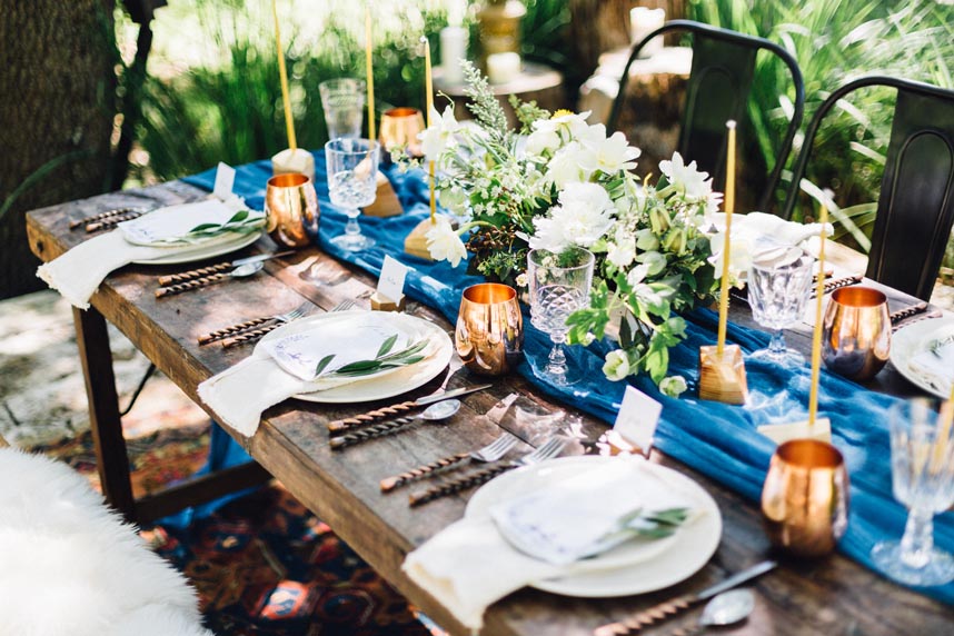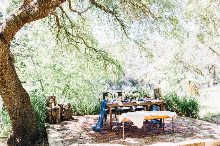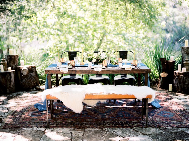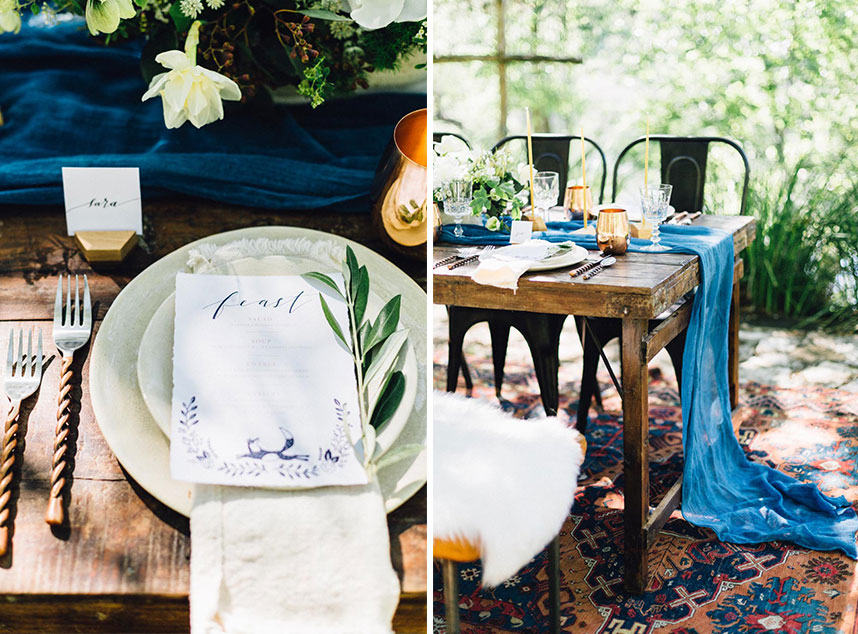 Wild Sky Events created this charming atmosphere by bringing romantic nordic design to the hill country for an enchanting setting at The Retreat at Balcones Springs. Feather and Twine captured every detail so beautifully! We and crushing over this unique hand crafted sketched fox menu, invitation suite and place cards from Archer and Olive. Adding to the beauty, you’ll find these fabulous copper mugs, glass goblets, china and napkins on the table from Loot Vintage Rentals. We’re also loving Premiere Events’ stylish spiraled brass flatware. The centerpiece by Gypsy Floral and Events added a lovely fresh touch to the table. We simply can’t get enough of this inviting outdoor lounge space for your guests to enjoy with tenting from Indie House Event Rentals. This radiant lounge area is full of cozy couches and chairs creating the perfect seating area. The pretty dresser also complemented the space beautifully with jewelry and bridal gown from Unbridaled. And who can forget the dessert, Simply Delicious Custom Cakes created this sweet cake with gorgeous floral details and cute patterned cookies. Pick up the newest issue of Brides of Austin and flip to page 153 to see more from this nordic hill country wedding design! Cheers to this amazing team of vendors!