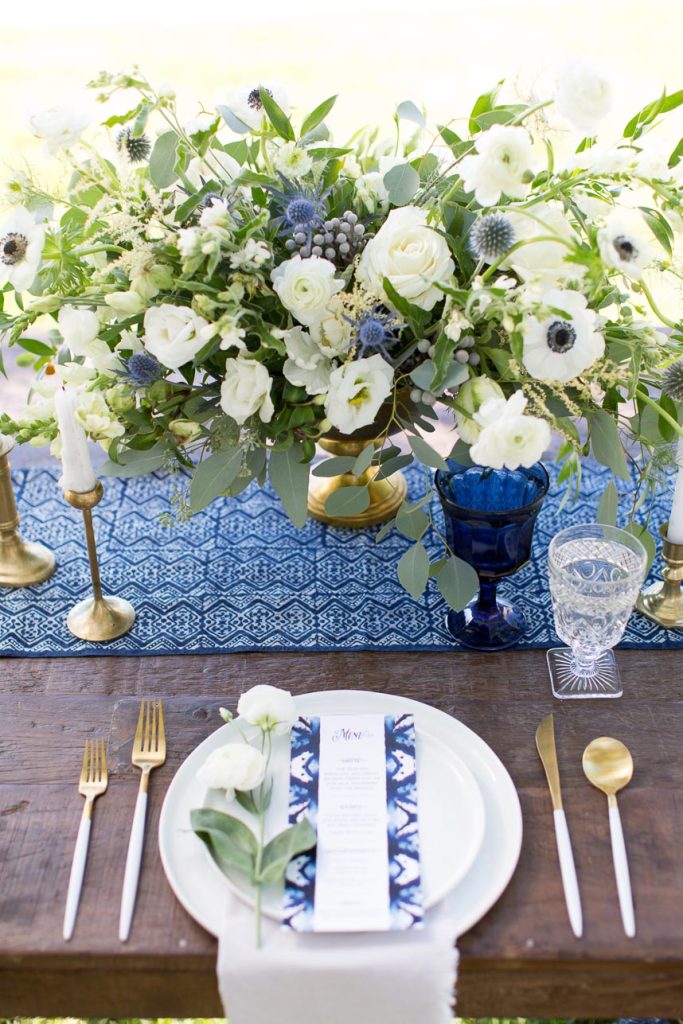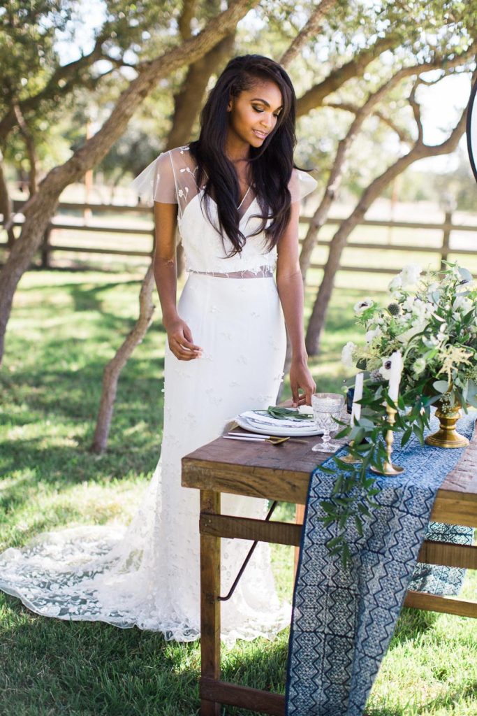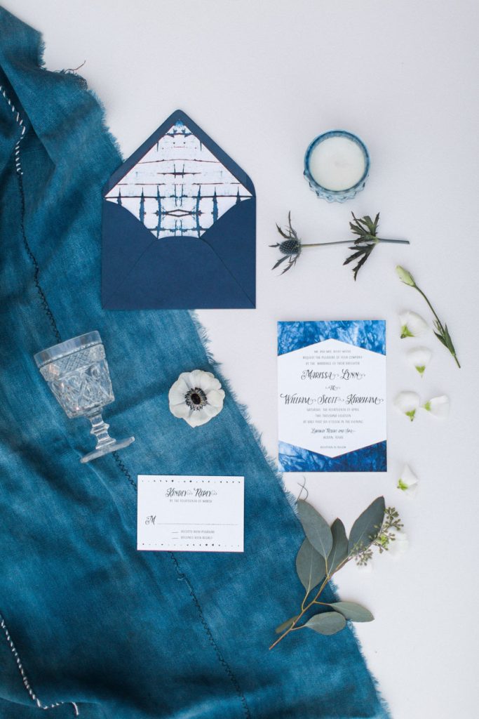 Gracing the pages of the Spring/Summer 2018 issue of Brides of Austin is this gorgeous organic indigo color inspiration from Penelope L’amore Photography. Dark blues and crisp whites pair so well together in the rustic contemporary tablescape from Birch & Brass, dyed invitation suite from Paper Place and coordinating indigo-dyed pillows in the lounge area beneath the lovely oaks at Firefly Farm, a rustic venue nestled in the heart of the Texas Hill Country. Eucalyptus leaves in the arrangements by The Bloom Bar are the perfect addition to highlight the cool tones throughout this editorial shoot and those same cool tones get a little sweeter with perfectly spackled desserts from Fluff Meringues & More. A uniquely sleeved gown from Unbridaled pairs so elegantly with understated hair and makeup by Cren de la Cren, Beauty by Katherine Crenshaw. Fresh cool tones, loose florals and dip dyed details create an organic indigo oasis perfect for any spring or summer wedding. Turn to page 97 of the latest issue for more inspiration to enjoy! Cheers!
