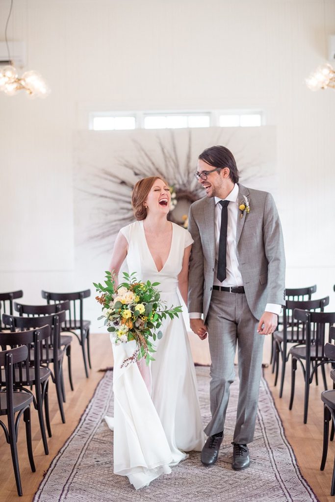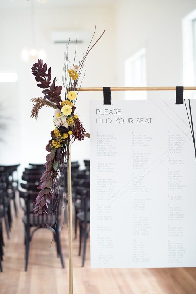 From the planner, Kierstin Schupack of Lovely Day Events Austin: “I was interested in creating a very modern yet organic ceremony backdrop, something striking and beautiful at the same time. I also wanted to move away from the vintage look and have all elements feel modern, chic and beautiful.”