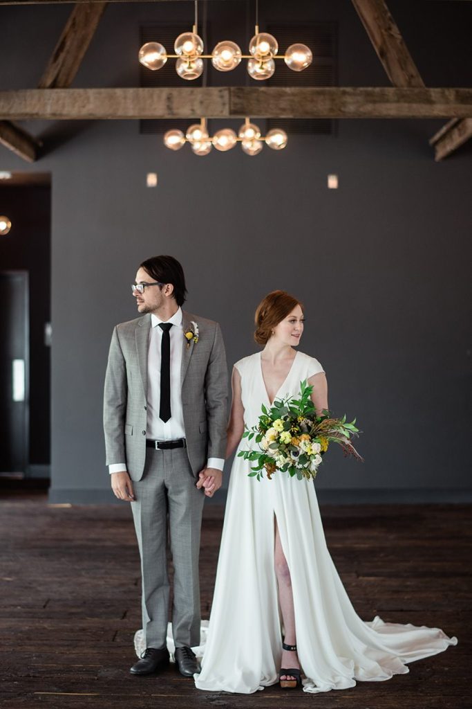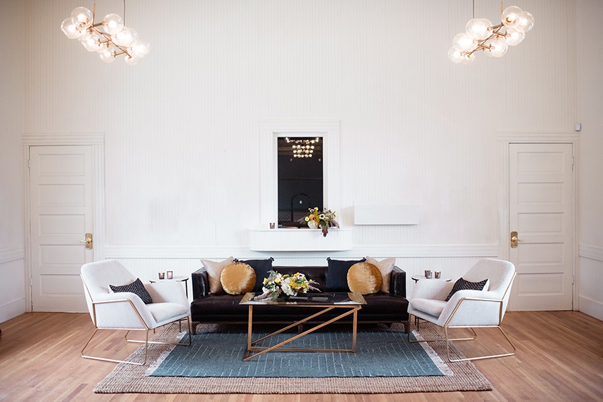 With an earthy color palette and the idea of simplicity at the forefront, this styled shoot from our Spring/Summer 2019 issue designed by Lovely Day Events Austin is giving us endless organic modern ceremony inspiration. Setting the scene with a white walled chapel space drenched in airy, natural light, Springdale Station served as the perfect backdrop for creating a dream space that was equal parts minimal and glamorous. Anchoring the decor with a neutral and navy color palette, Party at the Moontower’s furniture and lounge pieces were accented by glittering gold accessories – one of our favorites being the chic seating chart from Design to Flourish! A touch of floral embellishment from The Flower Girl added a bit of whimsy, with coordinating arrangements used throughout the pseudo wedding, from custom altar pieces to the model bride’s bouquet! Her blooms provided just the right amount of color to her polished yet natural look featuring a cap-sleeve open back gown from Blush Bridal Lounge, dainty jewelry from Nicole Mera and a soft makeup look done by Makeup ATX. Topping off the setting was a gorgeous three-tier cake with stencil-like floral embellishments from Iced Caked & Confections, a treat sure to have been enjoyed by all guests alike. Scroll down for all the fabulous details from this shoot captured by April Mae Creative and inspiration notes from the designer herself! Cheers!